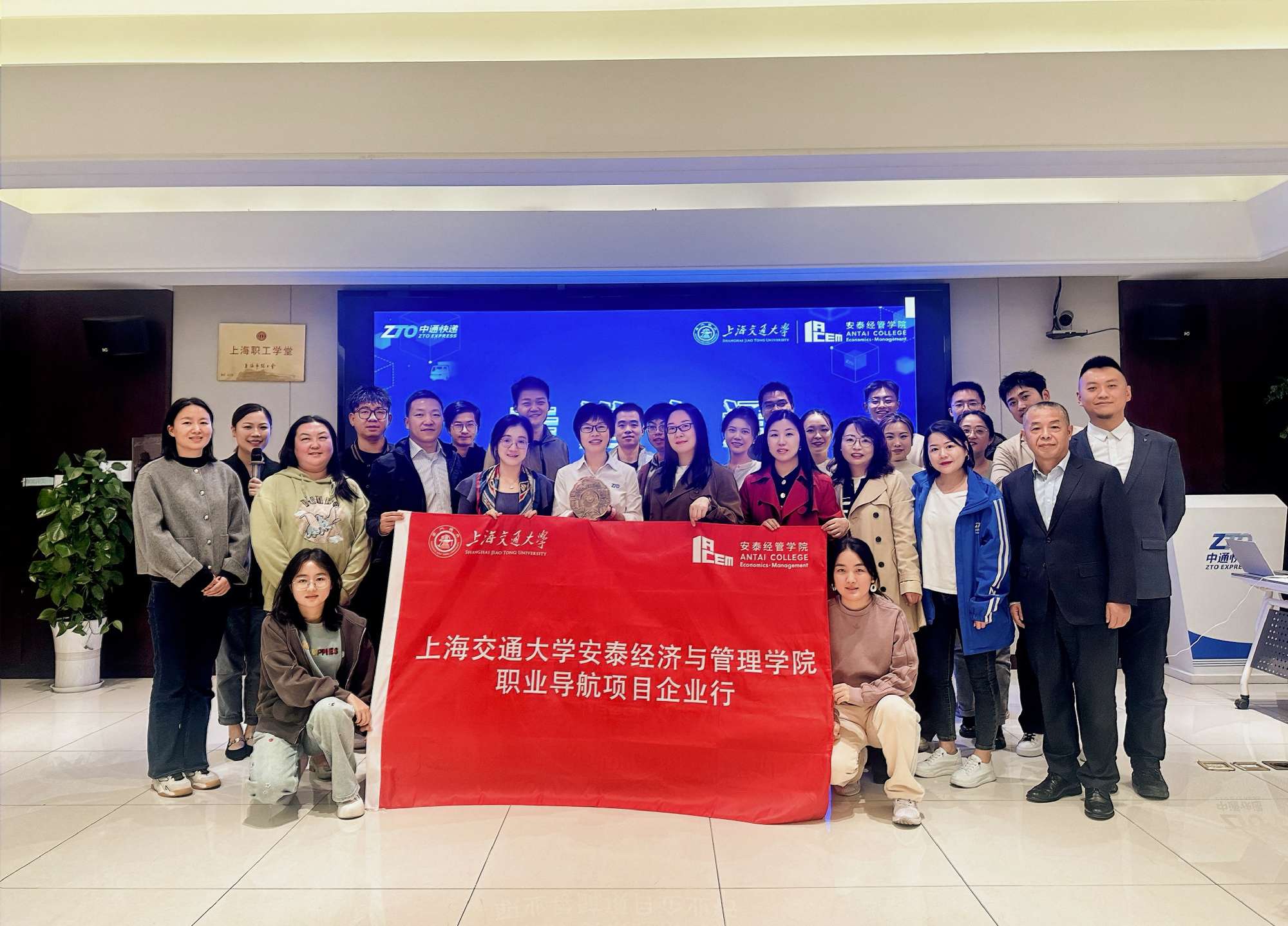 2025年11月4日下午,欧宝app官方网站下载安泰经济与管理学院本科、硕士及MBA师生一行15余人,在学院学生工作与职业发展办公室汤丽娜老师带领下,走进中通快递总部开展参访交流。活动由安泰职业导师、中通快递CFO颜慧萍发起,得到企业多部门积极响应。