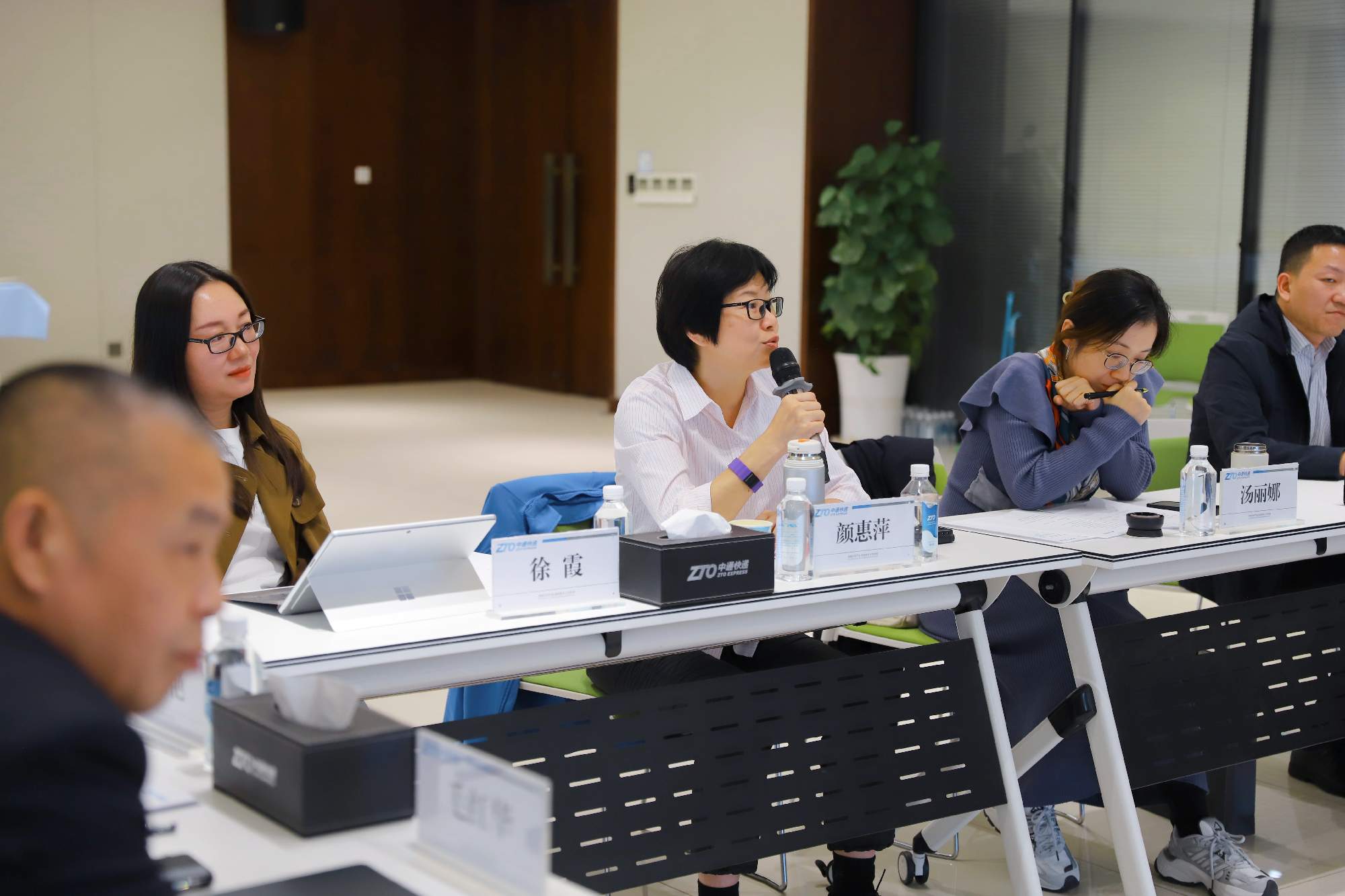 随后的座谈环节在会议室举行,气氛热烈而融洽。在自由交流环节,同学们围绕行业趋势、职业能力、管培生项目等踊跃提问,中通的各位领导均给予了细致深入的解答,思想的碰撞激发出无数火花。颜惠萍首先对交大师生的到来表示欢迎,并系统性地介绍了中通的发展现状、战略布局与未来愿景。集团业务财务部总监潘伟先生接着分享了中通在业财融合领域的独到实践,揭示了财务数据如何驱动业务决策与精细化运营,让同学们对现代企业的管理模式有了颠覆性的认识。校招负责人杨一坤则聚焦于“人”,详细阐述了中通针对校园毕业生的培养体系与职业发展通道,展现了中通对年轻人才的高度重视与长期投入。