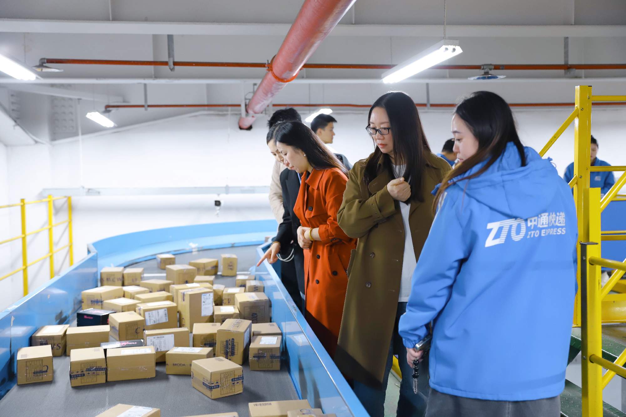 此次活动最具看点的环节要数上海转运中心的参观。全自动分拣线上快件高速流转,经扫描识别后由智能滚轮分拣至对应格口,再装车发往目的地。先进设备令同学们赞叹不已,切身感受到中通的高效运营。
