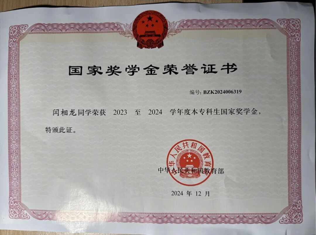 图 | 国家奖学金证书
