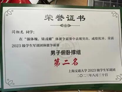 在音乐与运动中,闫相龙找到了青春的另一种热烈。他在课余创作的原创说唱作品在网易云累计播放量突破 5000 次,并在班风大赛中带来原创表演,广受老师和同学的好评。他热爱体育,坚持锻炼,曾获 2023 级军训团体能争霸赛男子俯卧撑组第二名,并随队在新生龙舟赛中夺得季军。音乐与运动让他的大学生活更加充实而有活力。