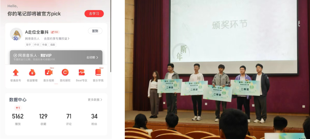 图 | 网易云总播放量破5k,在班风大赛上表演原创歌曲并获奖