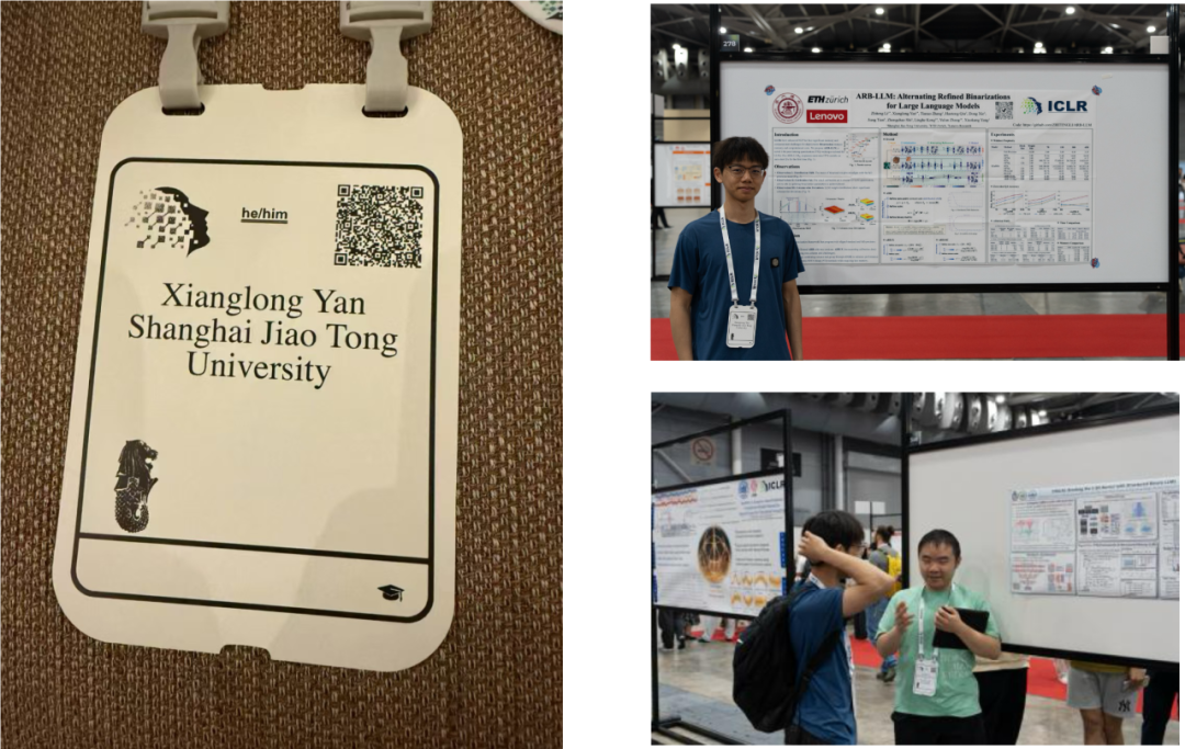 面对科研的重重挑战,闫相龙始终选择迎难而上。一次次调试与重来的尝试,让他从科研新人逐渐成长为能够独立思考并解决问题的探索者。他作为共同第一作者在人工智能顶级会议 ICLR 2025 发表论文,相关研究获多位领域专家的引用与积极评价。今年 4 月,他前往新加坡参加 ICLR 线下会议,与全球学者交流研讨,在思想的碰撞中更加坚定了在高效人工智能方向持续深耕的决心。带着这份信念,他持续推进科研工作,目前已有 3 篇第一作者论文投稿至国际顶会并在审,同时受邀担任 CVPR、ICLR 等顶级会议审稿人,在学术社区中贡献力量。