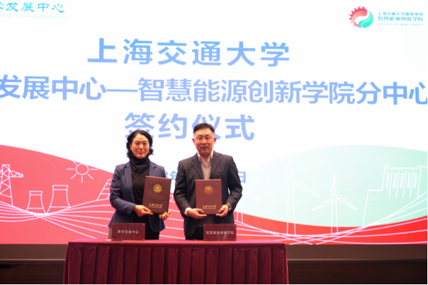 在与会人员的共同见证下,王丽伟主任、黄震院长、刘晓晶副院长分别代表学校教学发展中心和智慧能源创新学院签署了合作共建分中心的协议,并共同为分中心揭牌。