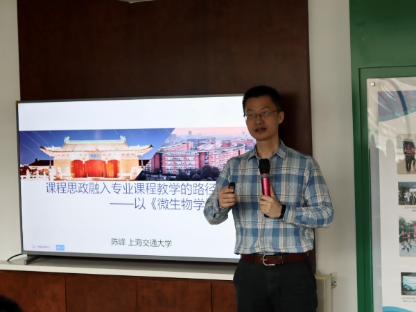 生命学院教学院长李志勇教授做了开场致辞,他指出生命学院是学校课程思政试点学院,以往已经有不少课程思政建设的成绩,陈峰教授的《微生物学》获得了首届上海市课程思政示范课程,说明陈教授在教学中对思政的挖掘和融入有深刻的理解和体会,本次课程思政建设的经验分享一定会对来参加活动的热爱教学的老师有所提升和帮助。