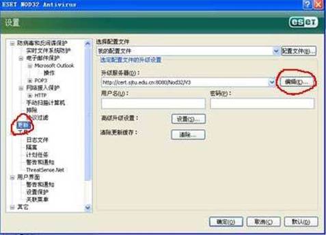 目前使用较多的是Nod32、Macfee、卡巴斯基、诺顿、趋势、瑞星、江民、金山毒霸等杀毒软件。推荐使用Nod32杀毒软件的3.0版。下载地址:http://comic.sjtu.edu.cn/down/system/NOD32.exe(升级设置方法如下图)。