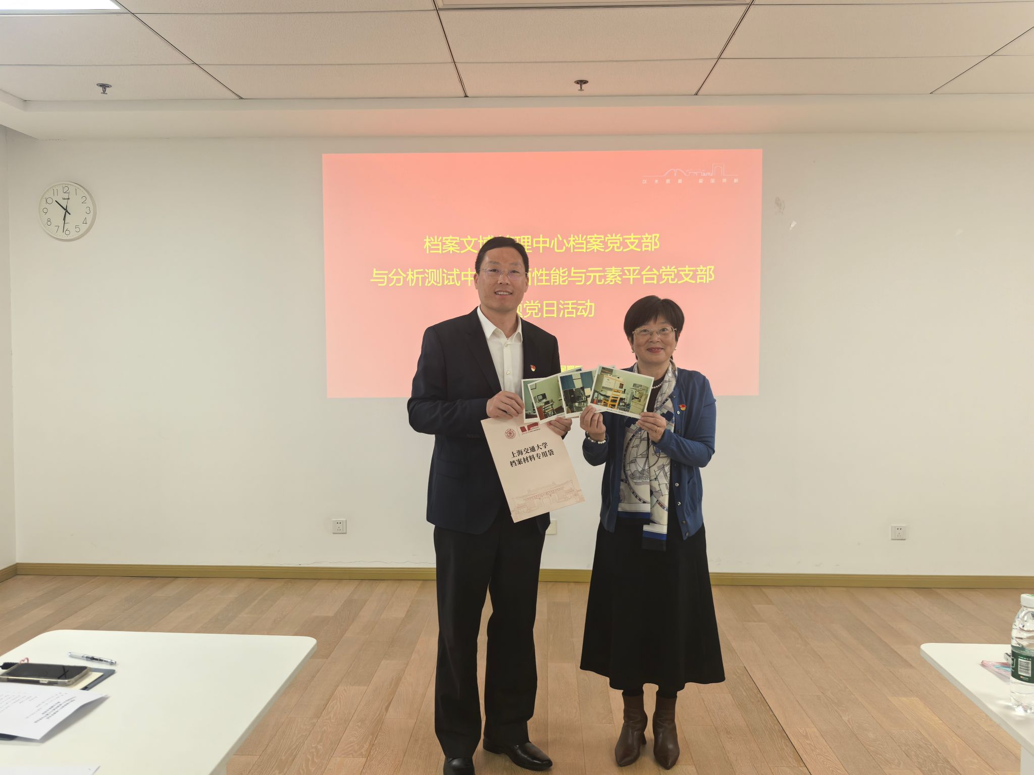 2025年10月30日,档案文博管理中心档案党支部与分析测试中心表面性能与元素平台党支部联合开展主题党日活动。本次活动以“深化科教融合、档案服务育人”为主题,通过交流研讨和实践观摩相结合,围绕服务学校“大思政”育人体系构建,共同探索跨领域合作新路径。
