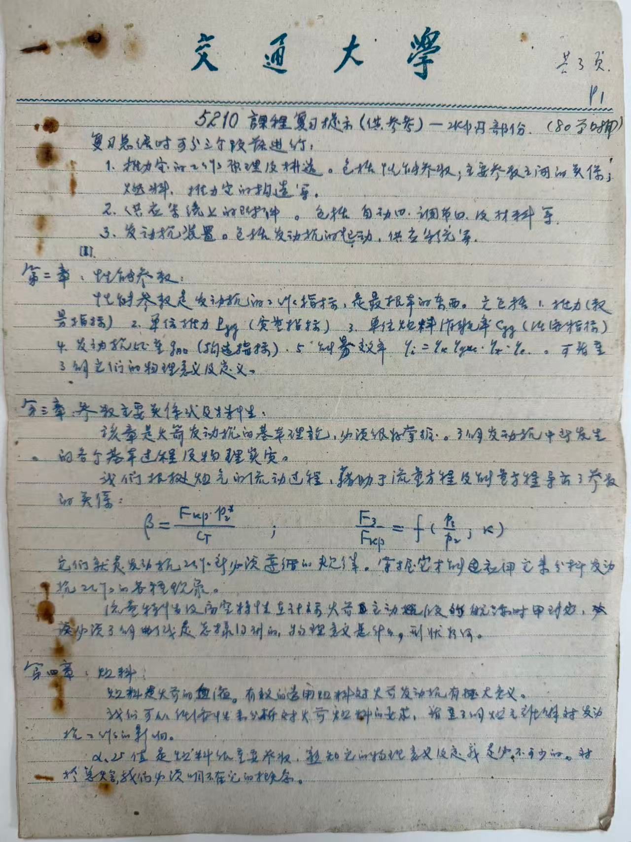 1960年代,工程力学系火箭弹体设计与制造专业学生王举邦的复习资料及考试试卷