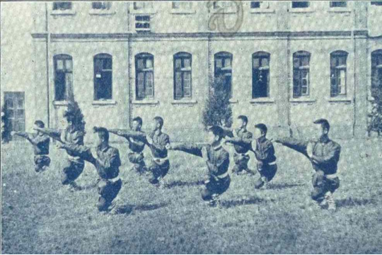 图片为技击部赴无锡进行校外技击表演(右一为陆定一)