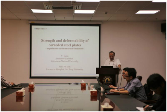 Professor Yoichi Sumi, Yokohama National University (YNU), visited School of Ocean and Civil Engineering, Shanghai Jiao Tong University (OCE, SJTU) and made an academic seminar titled “Strength and deformability of corroded steel plates-experiments and numerical simulation”, invited by Professor MA Ning and Professor WANG Deyu, OCE of SJTU.