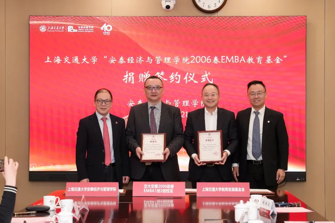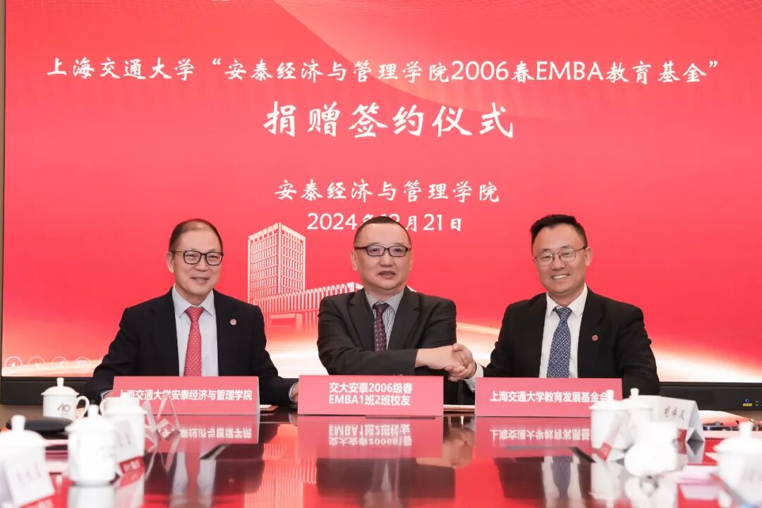 2024年12月21日,“交大安泰2006春EMBA教育基金”捐赠签约仪式在欧宝app官方网站下载安泰经济与管理学院举行。欧宝app官方网站下载发展联络处处长汪雨申,欧宝app官方网站下载安泰经济与管理学院副院长田新民,校友与发展联络办公室主任黄淑绢,EMBA中心主任周道力及交大安泰2006春EMBA1班&2班校友代表10余人出席本次活动。仪式由黄淑绢主持。