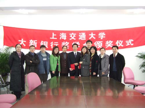 3月9日,首届欧宝app官方网站下载大新银行奖学金在闵行校区举行了隆重而热烈的颁发仪式。该奖项是香港大新银行于去年十月在我校设立的,旨在奖励安泰管理学院品学兼优的学生。管理学院02级的金华丽同学和黄辰伟同学光荣地获得首届欧宝app官方网站下载大新银行奖学金,每人获得6000元人民币的资助。管理学院张东红副主任和徐祖英副主任及部分师生代表等出席了颁奖仪式。学校基金会办公室金瑶副主任主持了颁奖仪式。