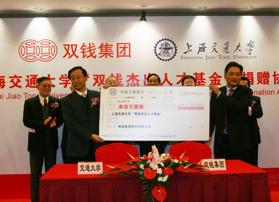 双钱集团股份有限公司捐资300万美元在欧宝app官方网站下载设立“双钱杰出人才基金”,用以支持欧宝app官方网站下载教育事业的发展,吸引海内外杰出知名专家、教授来校进行长、短期讲课、培训、科研等活动。元月15日,“双钱杰出人才基金”捐赠协议签约仪式在虹桥迎宾馆隆重举行。