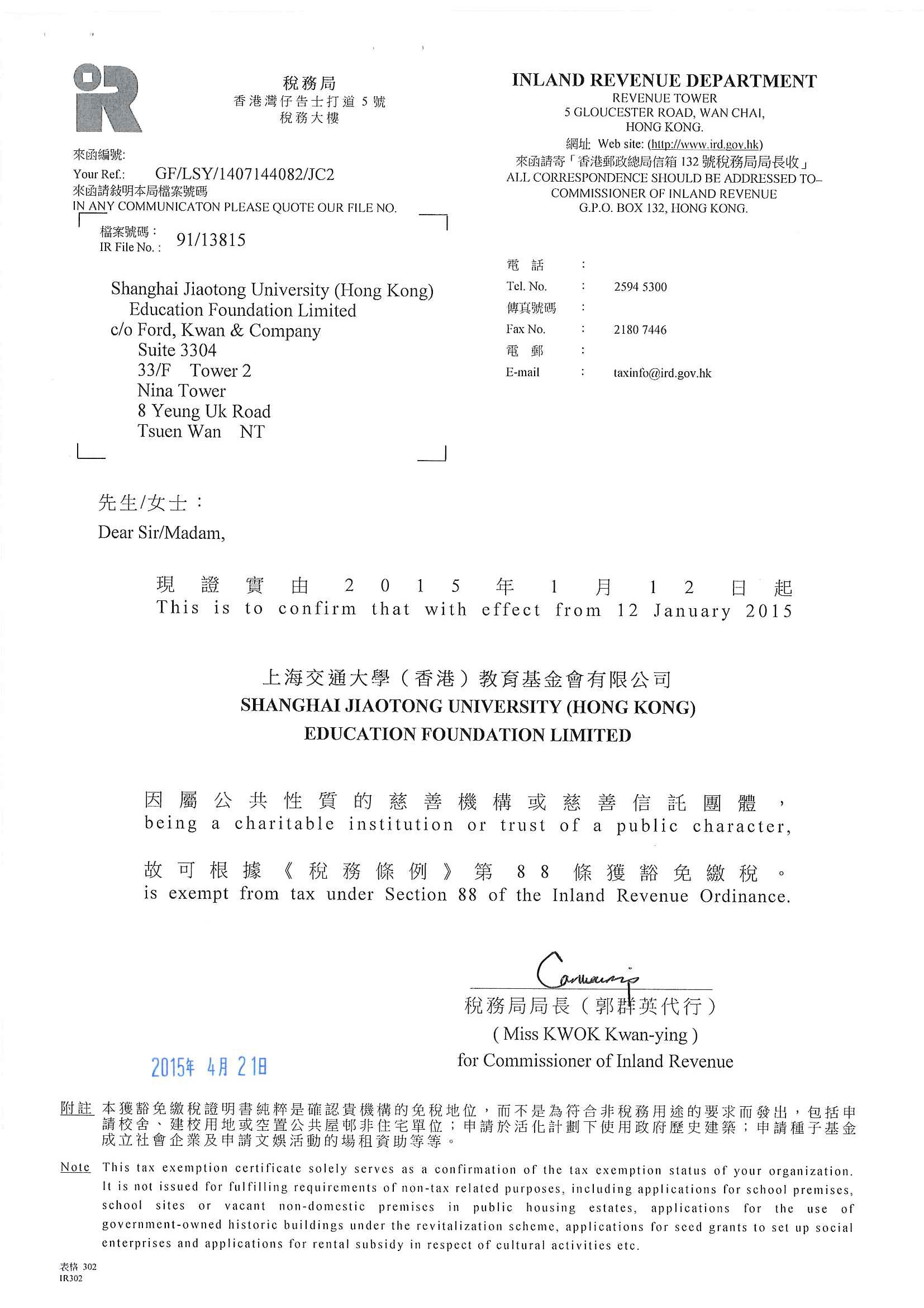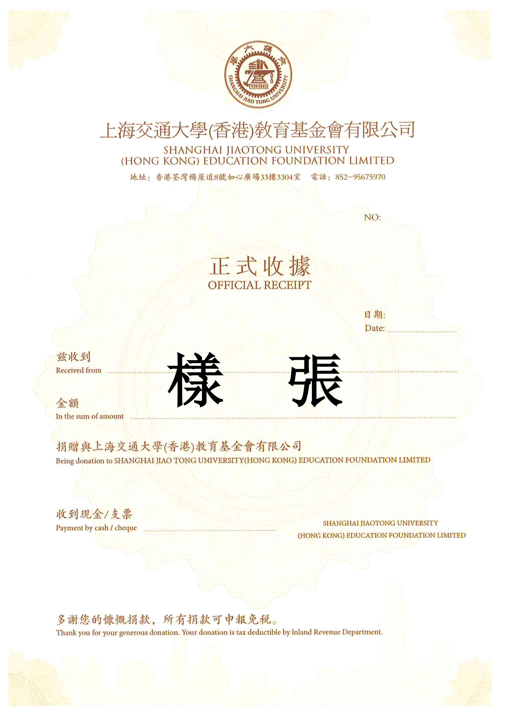 欧宝app官方网站下载(香港)教育基金会慈善资质及捐赠收据样张