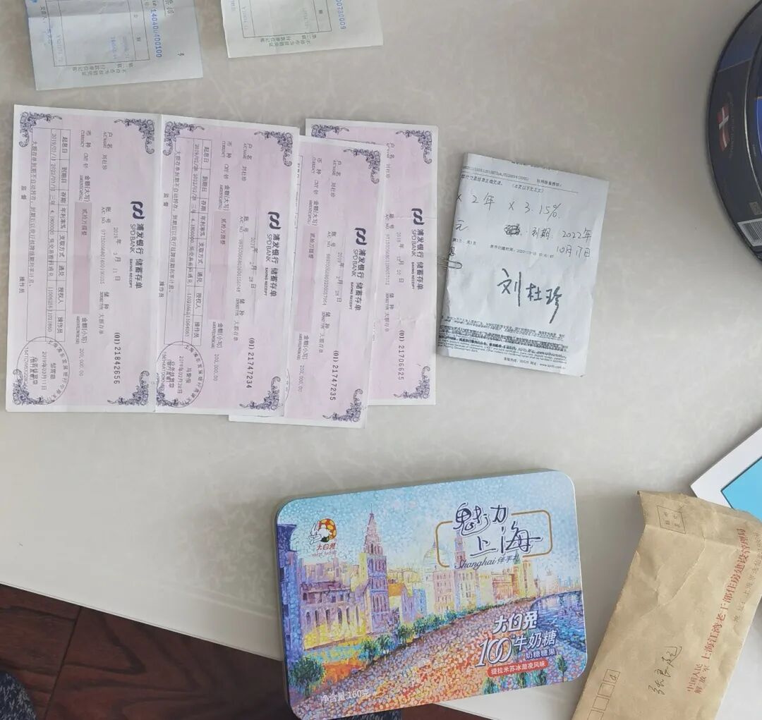 刘杜珍起身从卧室里拿出了一个小铁盒,里面装的是老两口全部存款票据。“把这个交给学校,他的两个心愿就算全部完成了。”
