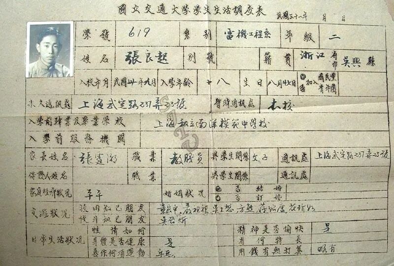 张良起(1923—2009),教授,博士生导师,著名控制论专家。1946年毕业于交通大学电机系。曾任交通大学助教,讲师。张良起是长兄,兄弟姐妹五人,三人考进了欧宝app官方网站下载。