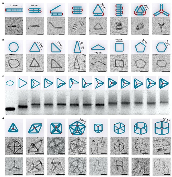 DNA的特异性碱基互补配对能力和“刚柔并济”的结构特性,决定了DNA强大可编程的自组装性能。目前DNA纳米技术构建的结构的尺寸主要集中在几纳米到一两百纳米之间。人们一直在探寻将DNA的这种精确构建能力拓展到肉眼可见的微观甚至宏观的层面,这样就可以自下而上的构建出任何人类想要的结构,进一步实现人类想要的任何功能。