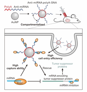 该工作构建了侧向间隔可编程的球形核酸。在保证高细胞摄取的前提下,能够通过polyA长度编程获得最优的靶标捕获能力,进而高效捕获细胞中的原癌miRNA并抑制肿瘤生长。该方法为外源功能核酸构象设计及细胞递送提供了新的策略,有望在细胞内分子识别及基因治疗中有更广泛的应用。
