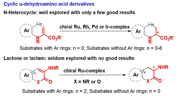 图1. 环状α-脱氢氨基酸及其衍生物的不对称氢化