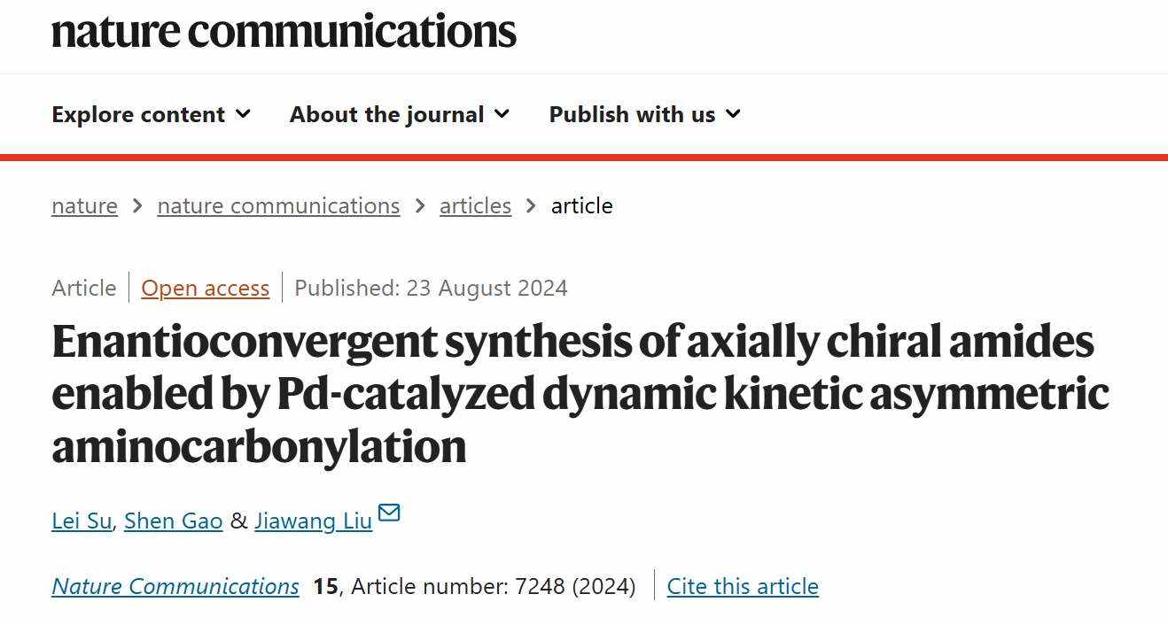 该研究工作近期以Enantioconvergent synthesis of axially chiral amides enabled by Pd-catalyzed dynamic kinetic asymmetric aminocarbonylation为题发表在Nature Communications上,文章通讯作者为欧宝app官方网站下载刘家旺副教授,第一作者为欧宝app官方网站下载博士研究生苏雷。该项工作得到了科技部重点研发计划、国家自然科学基金、中央高校基本科研业务费和上海市启明星计划资助。
