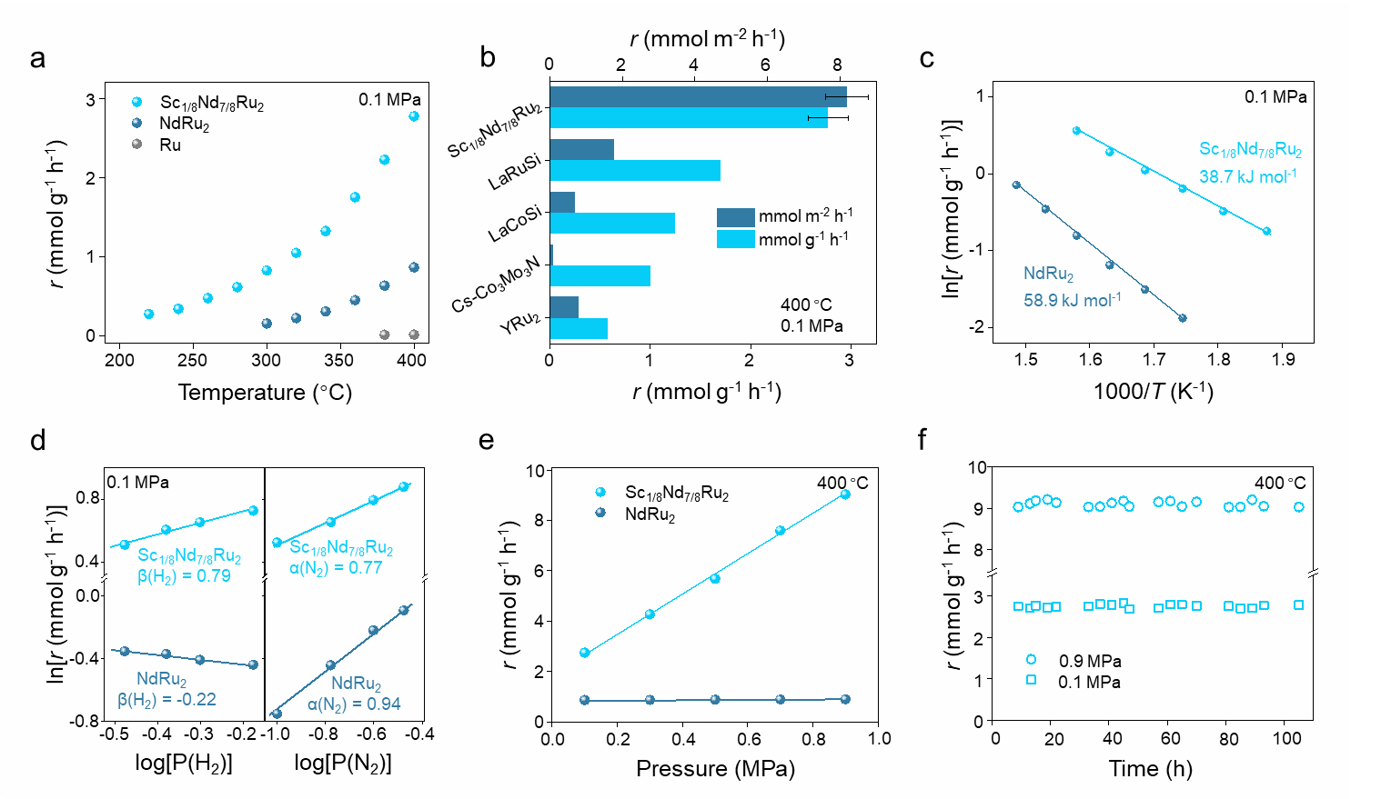 图4. Sc1/8Nd7/8Ru2系列催化的合成氨活性。