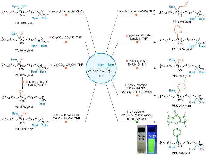 图4 偕二硼聚烯烃的多样性导向聚合物后修饰