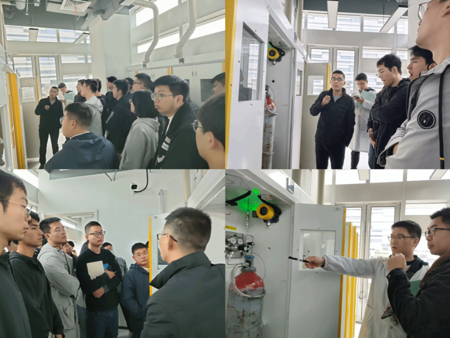 培训伊始,工程师以中心实验室的气路装置为实例,系统讲解了集中供气系统的结构原理与控制端口功能。现场通过展示气路设备、链条固定的气瓶及墙装探测器,演示了气体泄漏报警器的触发条件与处置流程。工程师结合探测器指示灯状态,说明报警器的联动机制,师生们认真记录,积极提问,就探测器分布间距、报警响应时间等细节与工程师深入交流。