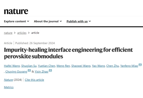 赵一新团队Nature:解决了工业化大规模制备钙钛矿模组中面临的大面积引发杂质累积效应的关键科学问题