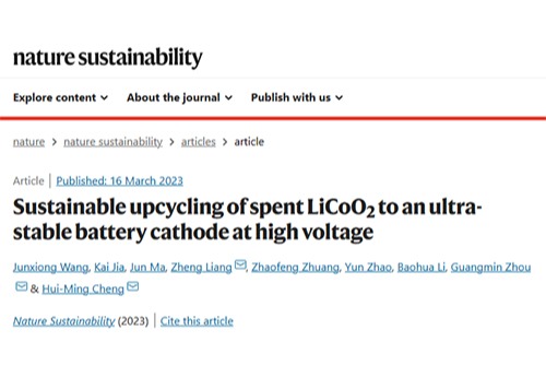 梁正团队王俊雄助理研究员以第一作者在Nature Sustainability发表退役电池向上循环新策略