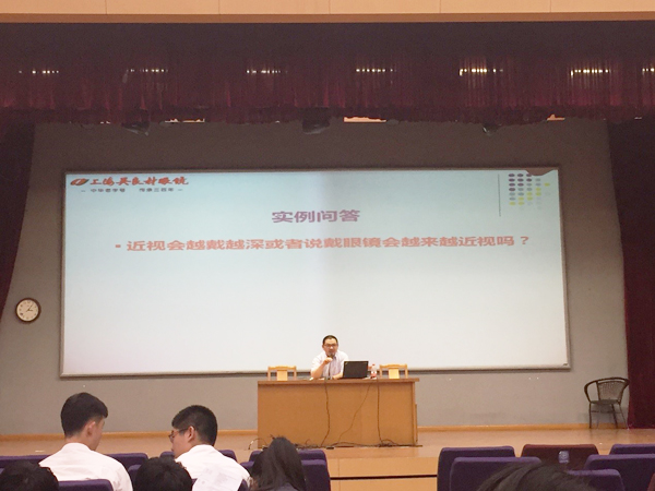 黄明星先生在上海市技能大师工作室、上海市青少年质量教育社会实践基地有着丰富的近视防控工作经验,曾致力于多项专利镜片的研发。此次讲座,他以“六月六日全国爱眼日”引入讲座,紧接着又从学习与护眼的关系、眼球的构造、引起近视的因素、近视的防控等多个角度介绍了有关眼科防护知识,最后他提出青少年近视防控的四大误区,给在座同学们对近视防控有了更加科学客观地了解。