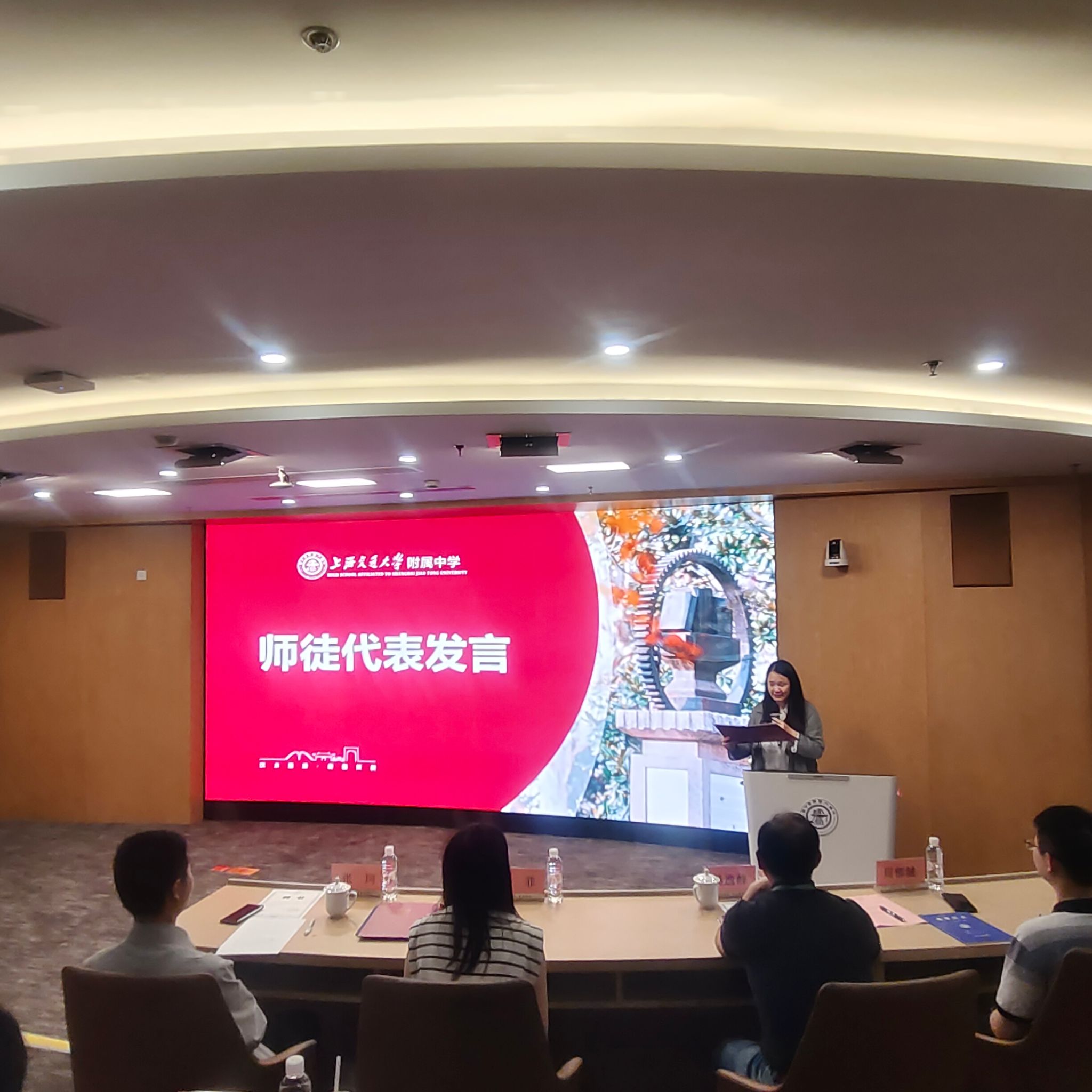 首先,教研处庄凌主任宣读了本年度的师徒带教名单,并作带教导师与新入职教师职责的解读。她强调,双方教师要按照带教协议履行好各自的职责,带教导师应爱护徒弟,毫无保留地传承教学经验;新入职教师应尊敬师父,并像海绵一样充分吸收师父传递的知识与技能。