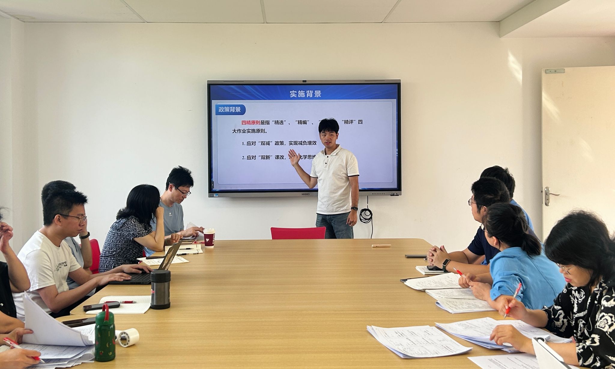 活动伊始,教研组长张立军老师作了《基于四精原则的作业实施概述》的主题发言。他系统阐述了“四精”原则的内涵与实施路径,强调作业不仅是知识的巩固手段,更是思维训练和素养培养的重要载体。张老师指出,教师要结合学情和考情,科学设计作业内容,实现“减负增效”的教学目标。