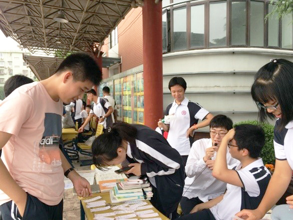 五月中下旬,在交中对外联络部的发动下,高一高二的学弟学妹们用涂鸦、文字等形式为高三的学长学姐们送上了最真挚的高考祝福。“在希望学长学姐们加油的同时,也是对我们自己的勉励。”对外联络部还特别推出“高考一展宏图”图纪念T恤,为学长学姐带去浓浓的交中暖意。