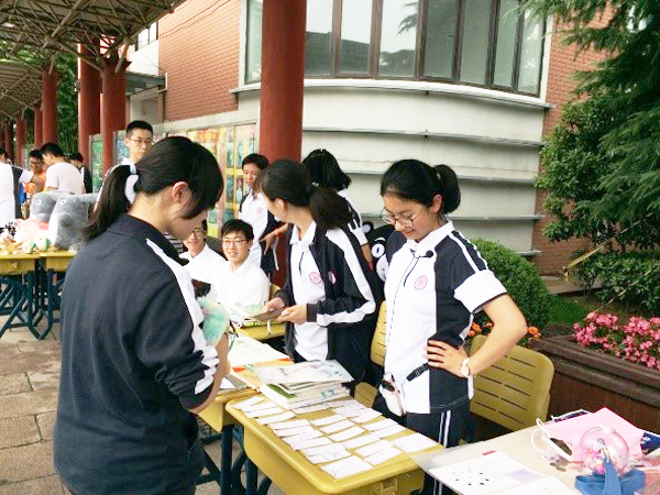 尽管天空中下着细密的雨丝,同学们买卖的热情丝毫不减,每个班都拿出了自己精心挑选甚至是自己动手设计的创意物品,摆满了桌子。热情的推销员们的叫卖声甚至盖过了雨声。大家都投入到义卖活动中去,为慈善事业尽自己的一份力。