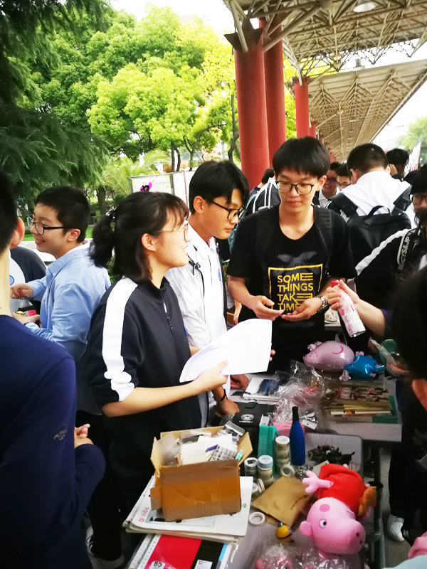 2018年6月5日,上海交大附中2018年爱心义卖在风雨长廊成功举办。本次义卖由模拟社区银行部、学习部和社团部主办,共有25个班级和4个社团热情参与了这次活动,学习部也同时开展了笔记交流活动。丰富多彩的活动为交中校园点染出亮丽的色彩。