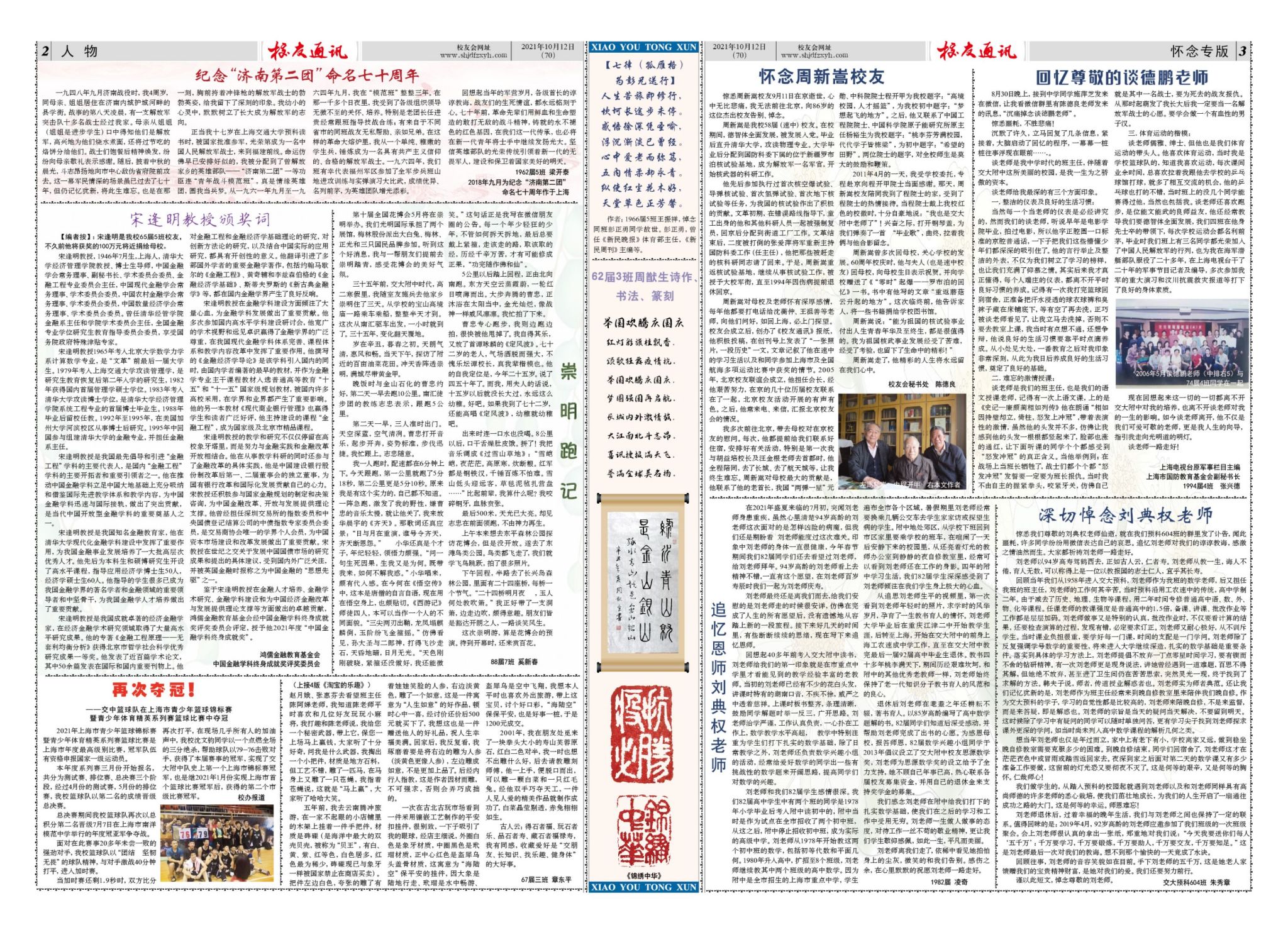 《校友通讯》第70期 2、3版(点击图片查看大图)