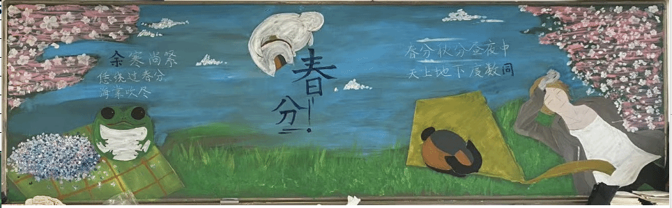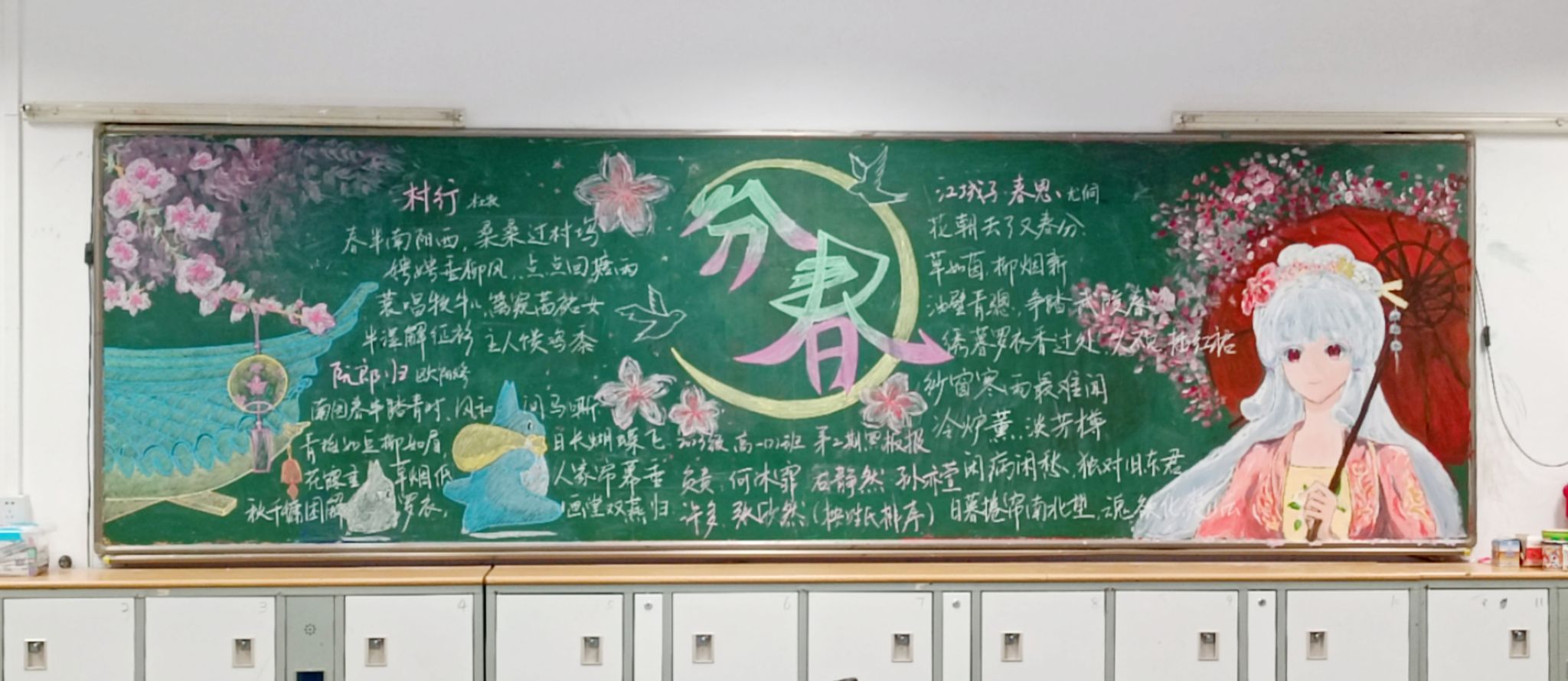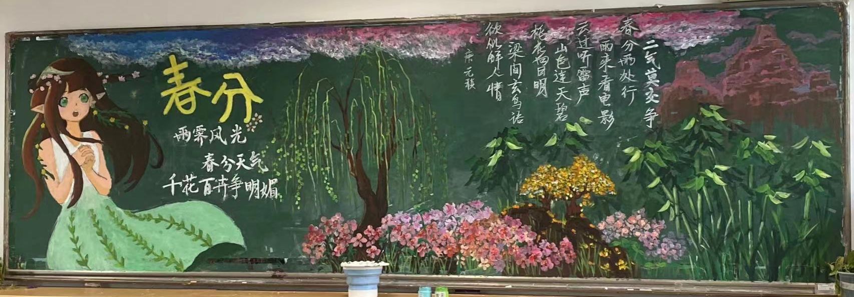 春分时节,大地回春,万物复苏,农谷春耕,万物生长,农民们忙碌于田间,播下希望的种子,在春分这个充满生机和希望的时刻,我们怀着梦想的种子,努力奋斗,让每个梦想都能开花结果,绽放出属于自己的光芒。高一年级学生在黑板上描绘出春天的绚丽多彩,让人心旷神怡。让我们迎接春天的到来,与大自然共舞,与春风共醉,让黑板报上的春天永远绽放!