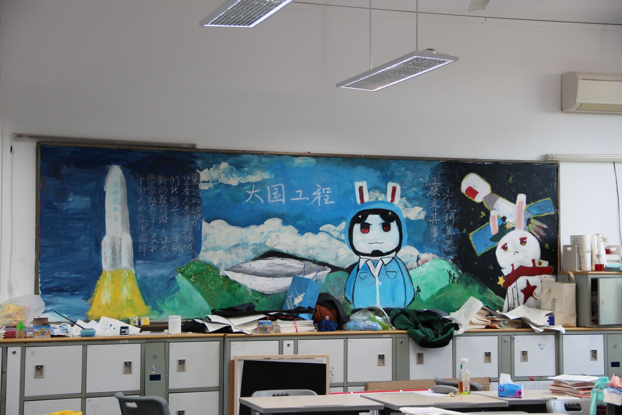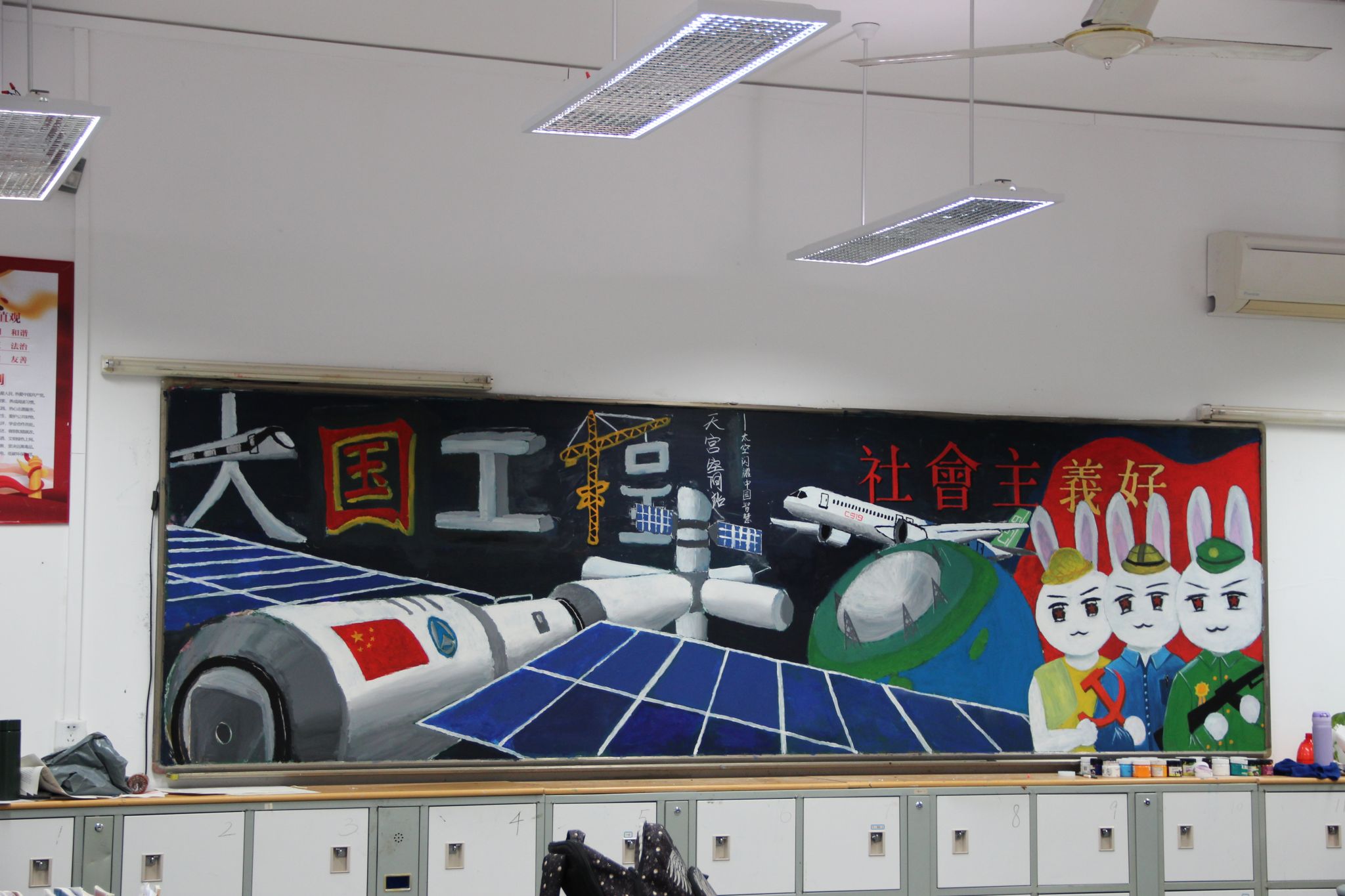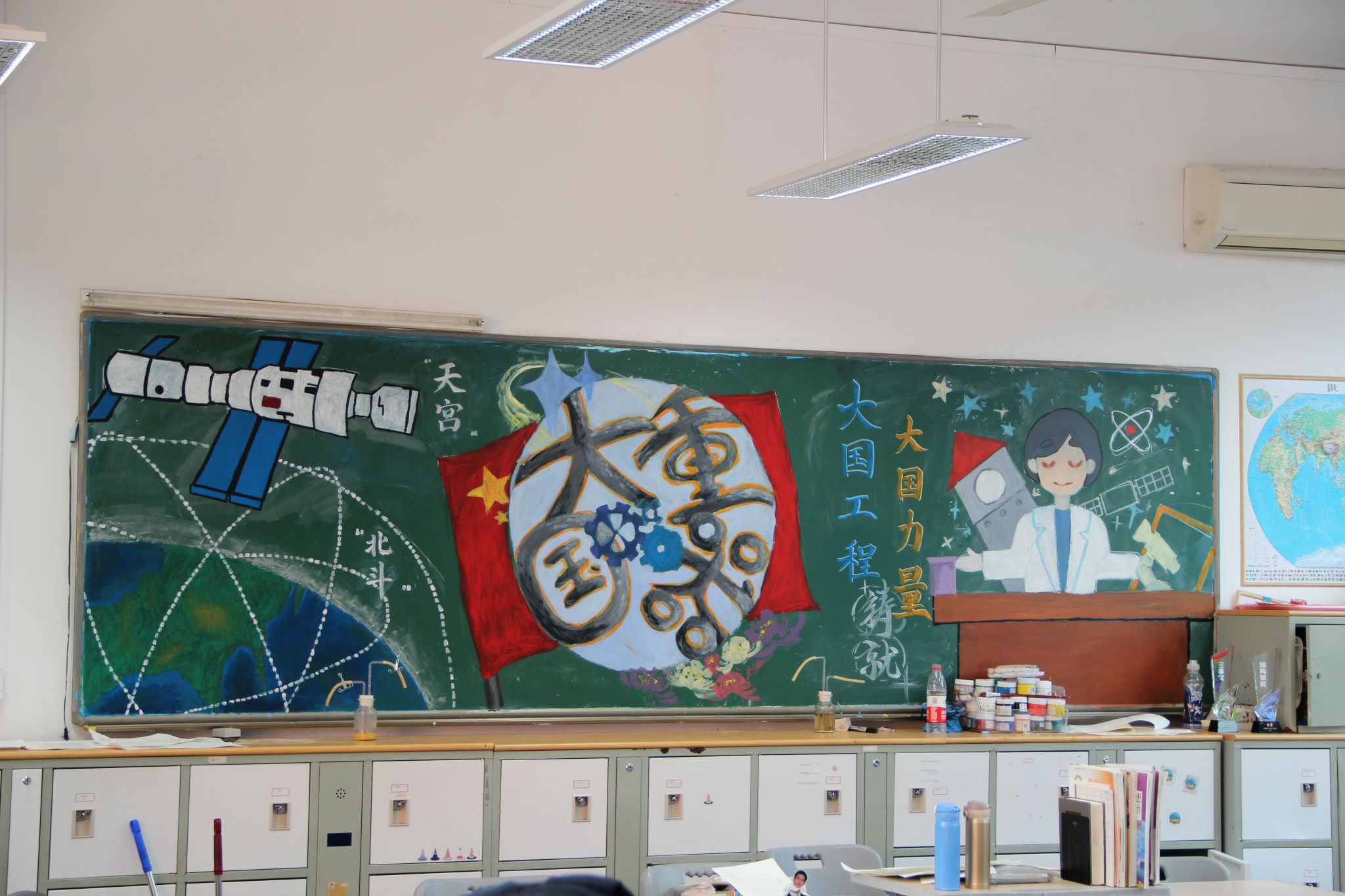工欲善其事,必先利其器。党的十八大以来,“神舟”飞天,“天问”探火,中国空间站全面建成……一系列科学装置的建设运行,各类工程建设的加速推进,汇成了我国一幅波澜壮阔的新时代画卷。高二年级学生在黑板上留下他们逐步了解大国工程的足迹。粉笔刻写下的一笔一划,笔刷勾勒出的鲜艳色彩,无不让我们看到十七岁少年们想象力与创造力的迸发,于心底生长出的簇簇热烈的“美”。