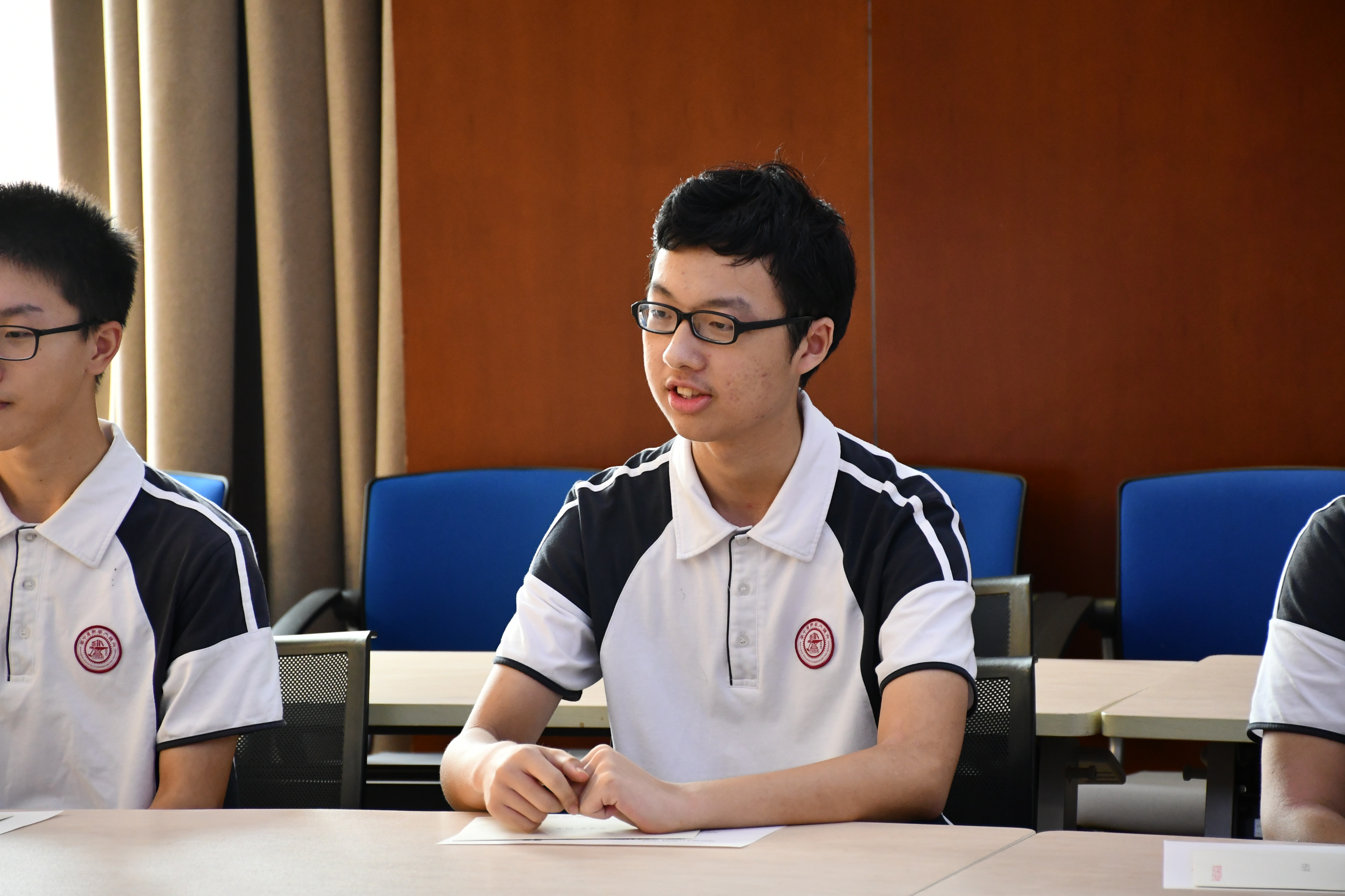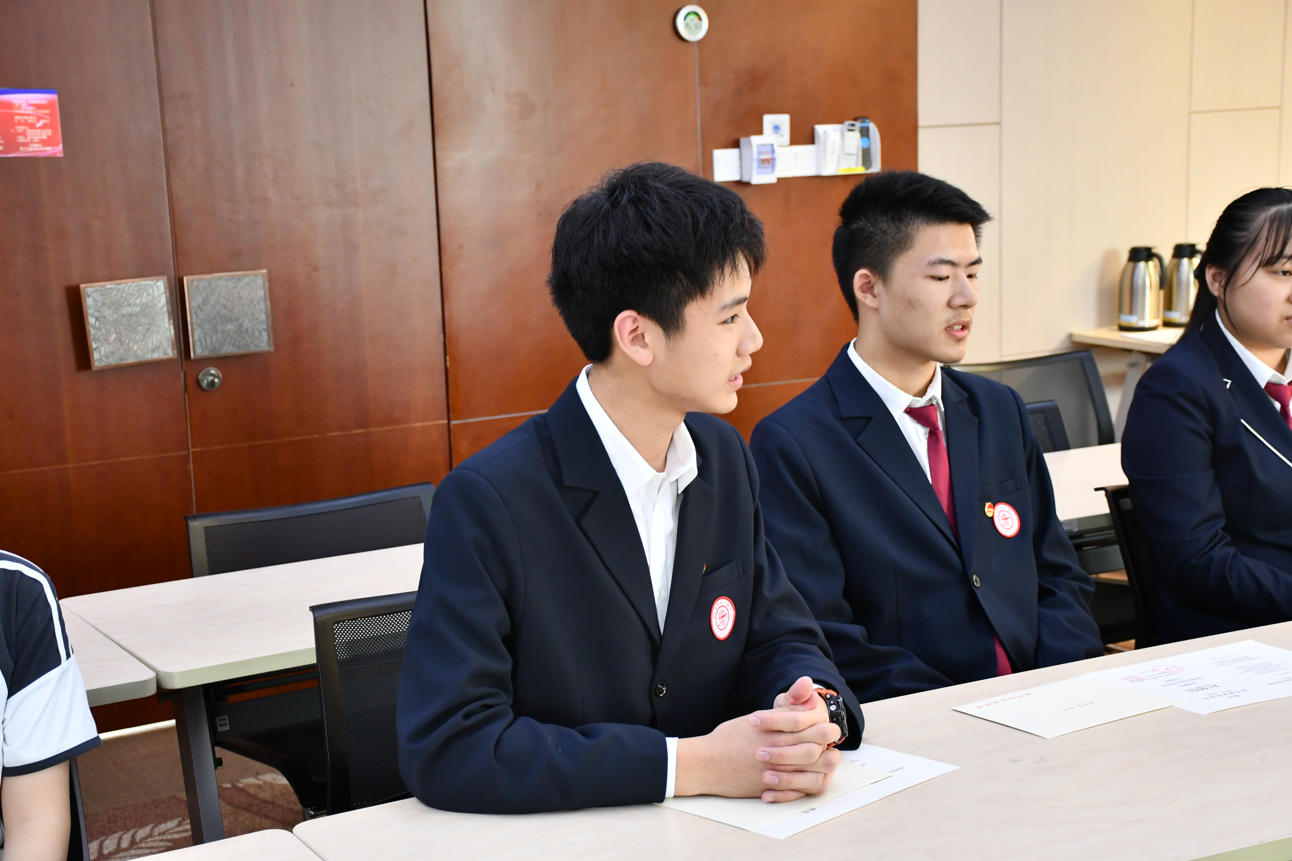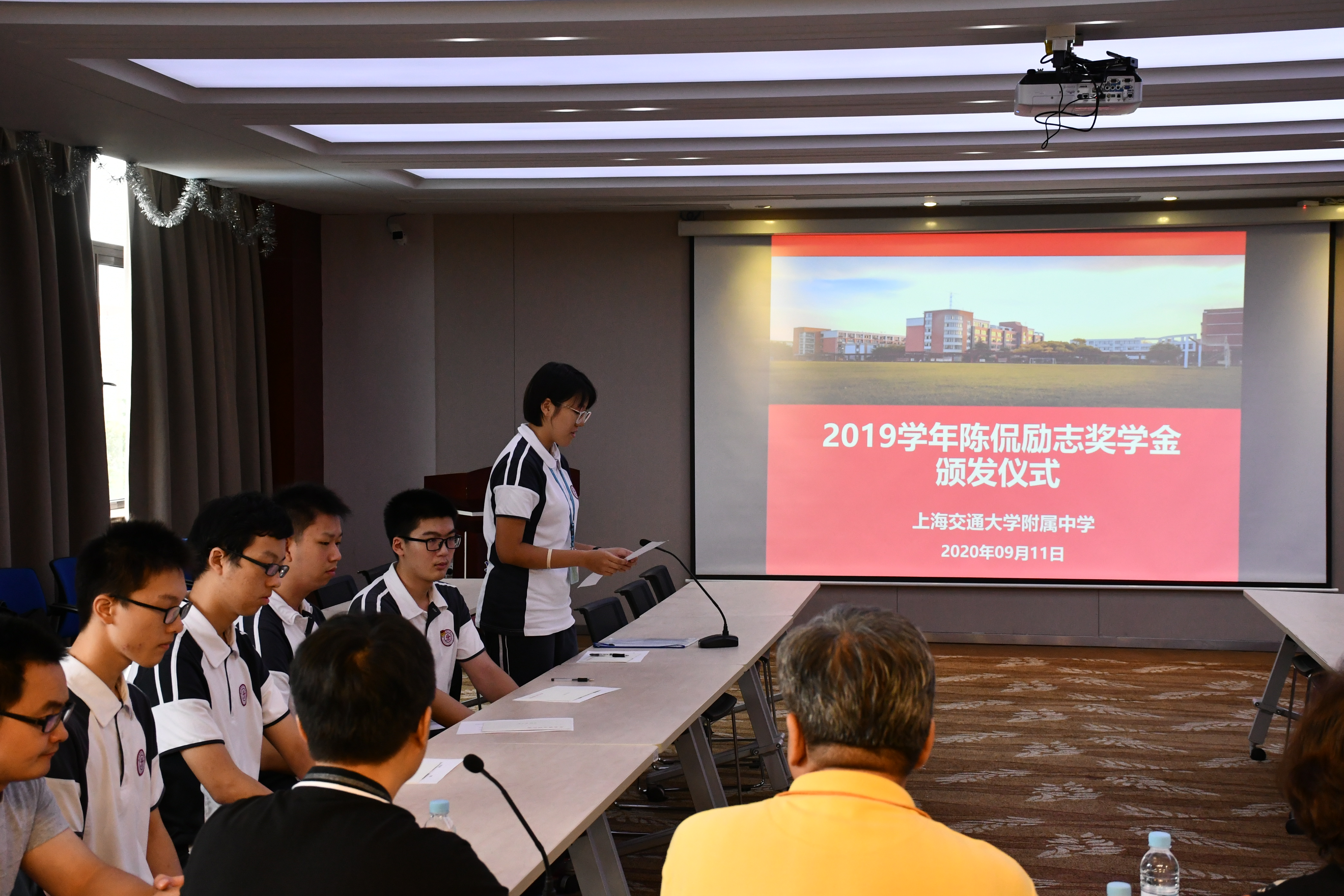本年度陈侃奖学金获奖者代表高三陈方雨同学总结了这学年来所取得的成绩和各方面的成长经历,结合当下疫情表达了自己回报社会国家的志向和对陈克伦夫妇给予鼓励与支持的感激,高二获奖沈逸轩同学也交流了自己的感想和对陈克伦夫妇的感谢。