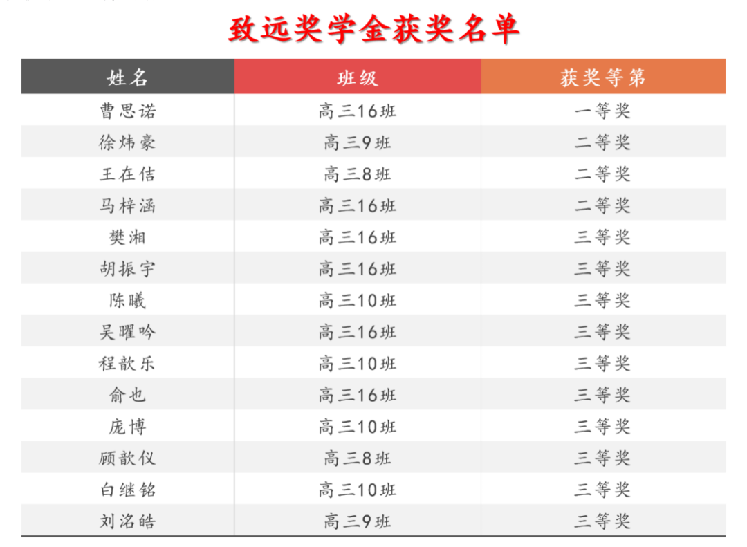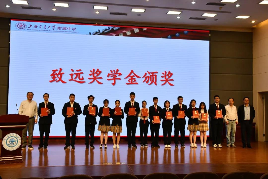 随后进行了致远奖学金颁奖仪式。交大附中88届6班同学为回报母校及母校的教育事业,体现“努力向上,助人为乐、回报母校、同学友情”之交大附中学生理念,在毕业20周年之际,共同出资设立了致远奖学金,对学习优秀、品行端正、有助人为乐精神的交大附中在校学生进行奖励。