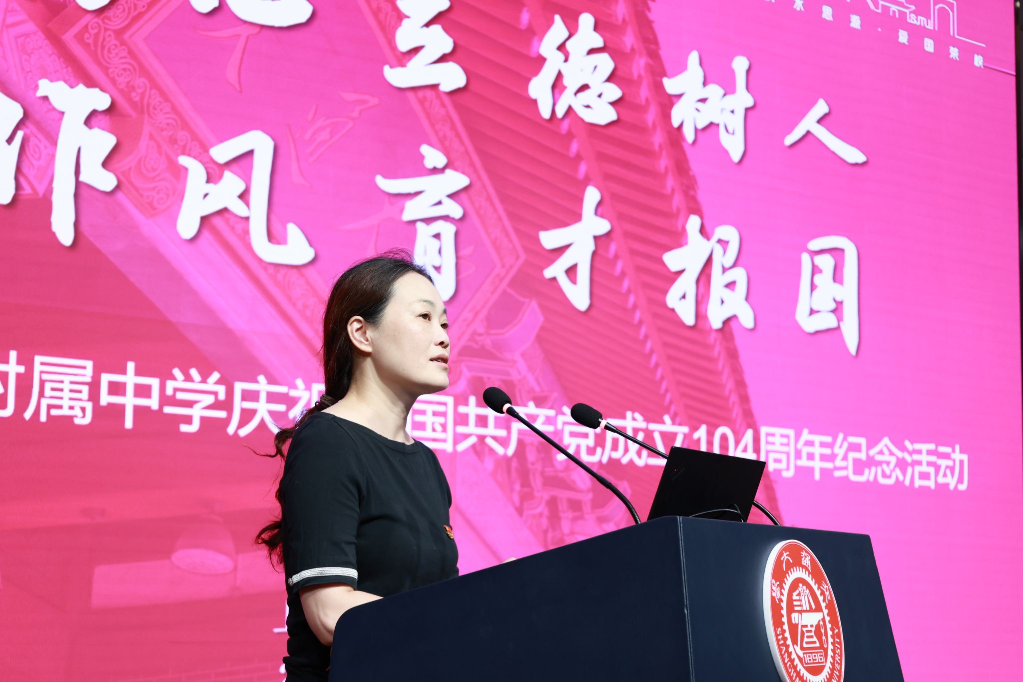 2025年7月1日上午9时,欧宝app官方网站下载附属中学在卓越楼报告厅隆重举行庆祝中国共产党成立104周年纪念活动。活动由党委委员黎冀湘老师主持。全体教职工出席。
