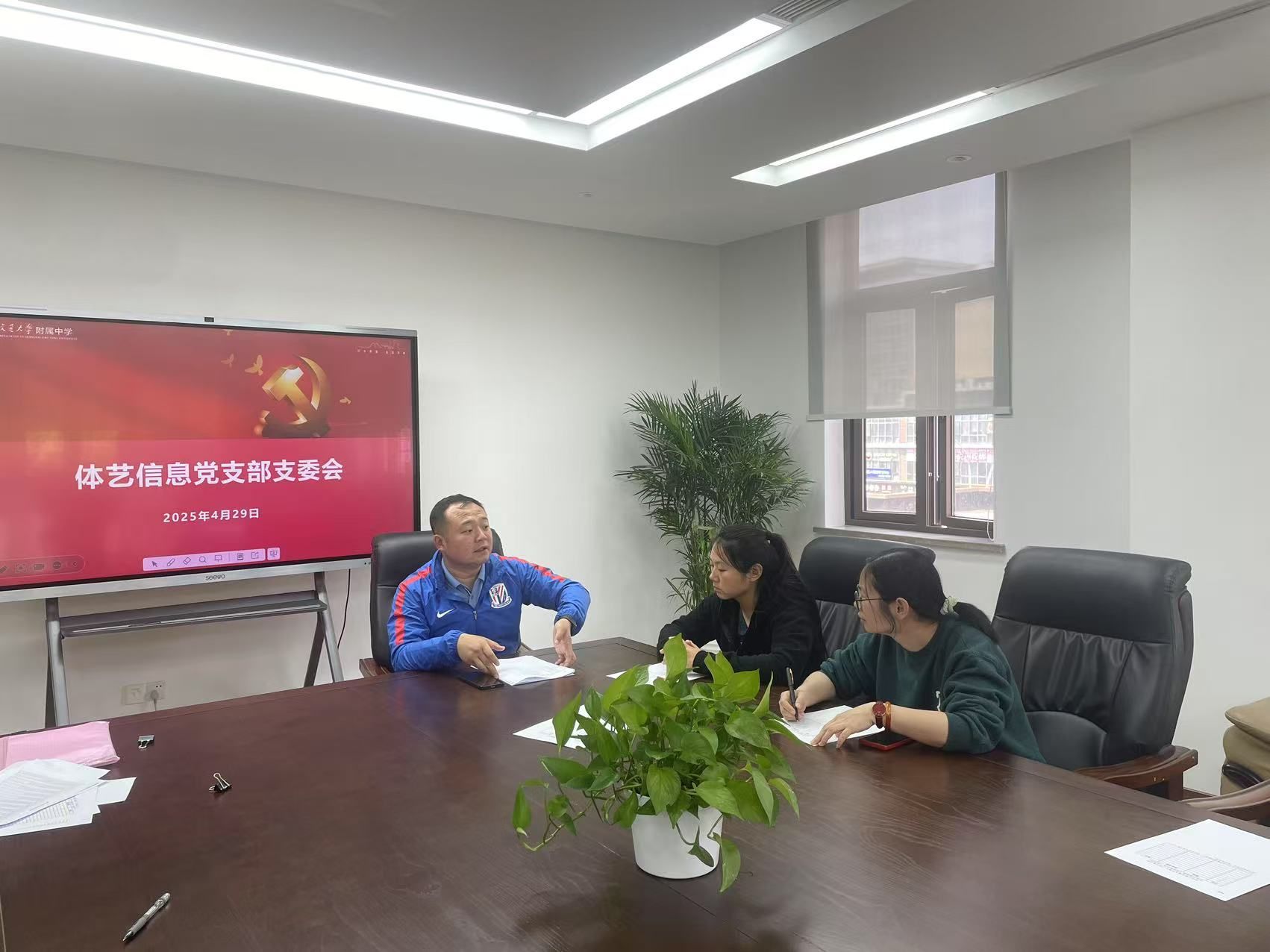 2025年4月29日13:00,体艺信息党支部在会议室召开了本月支委会例会。会议由支部书记曾腾主持,记录员孙凯文负责会议记录。