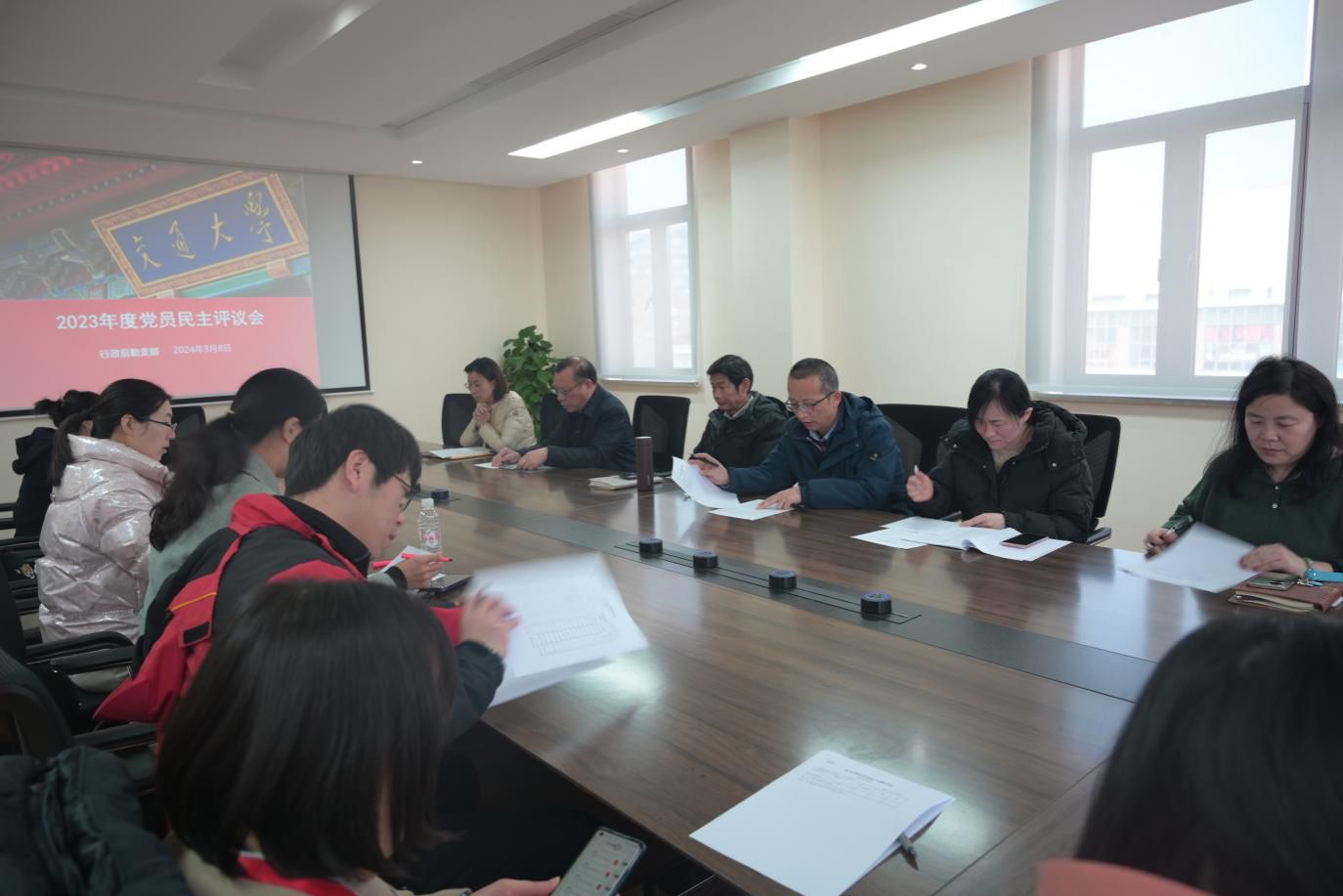 2024年3月8日,行政后勤支部14名党员在君洪楼403召开民主生活会。党委委员、副校长顾岗列席会议。