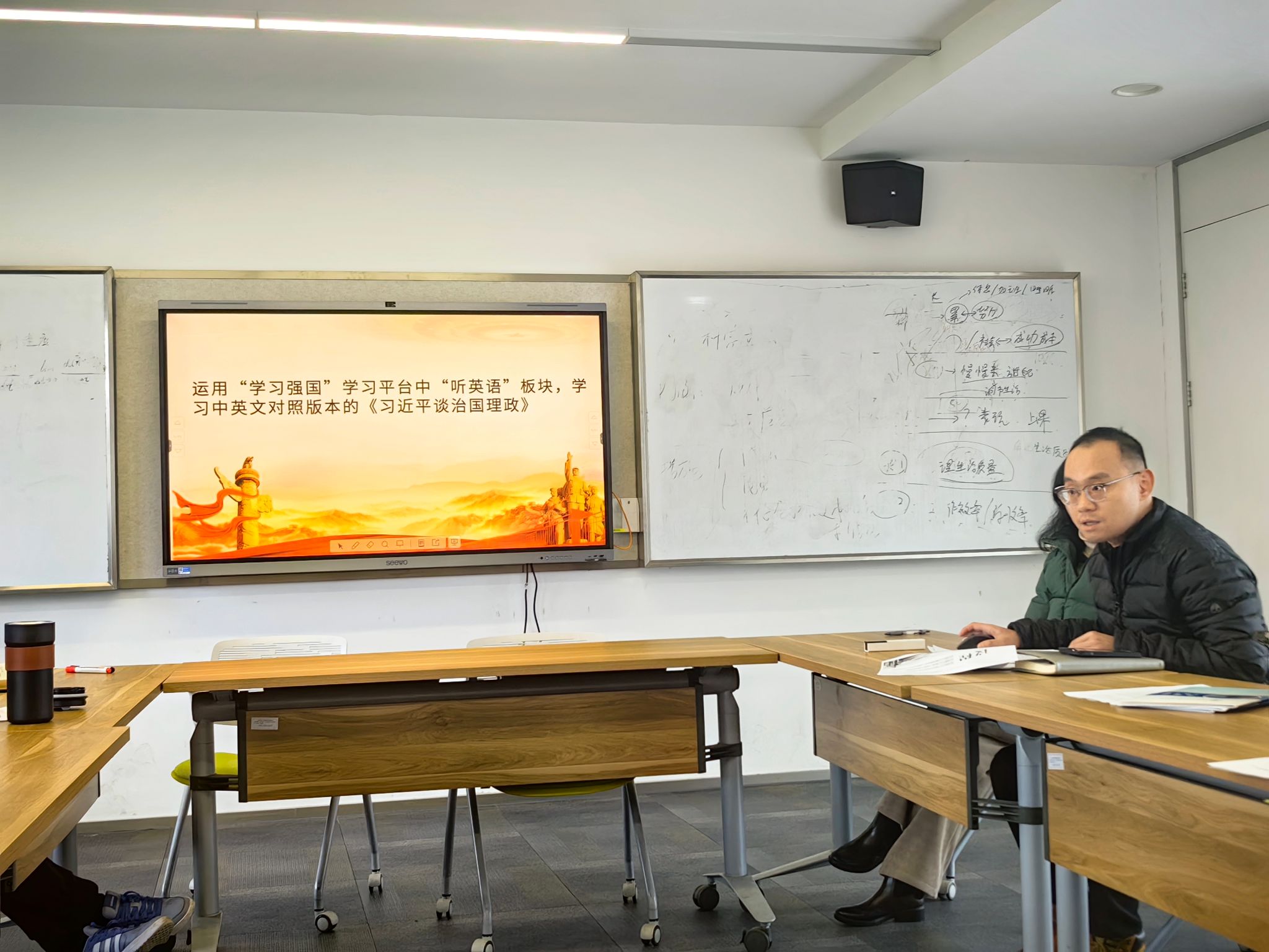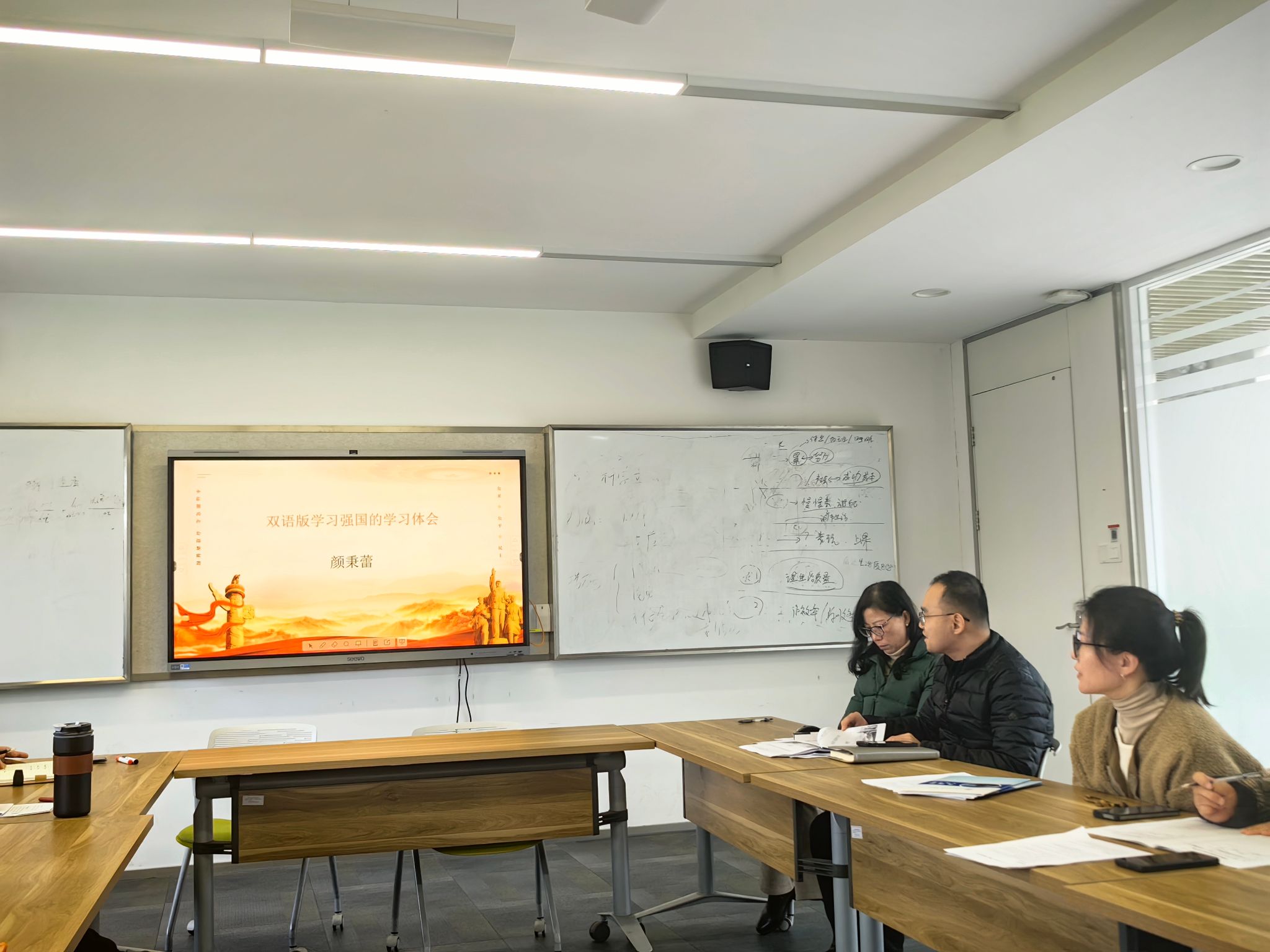 季晓彦老师首先向英语党支部全体党员介绍了英语党支部的品牌以及具体内涵。季晓彦老师表示,我们应为党育人,落实理论,依托双语党建,双语版学习强国资源,提高自身政治觉悟。接着,季晓彦老师带领大家进一步深入学习了《习近平谈治国理政》的重要内容。