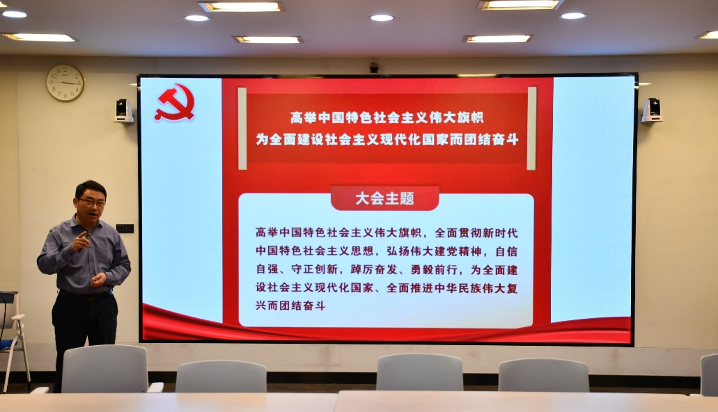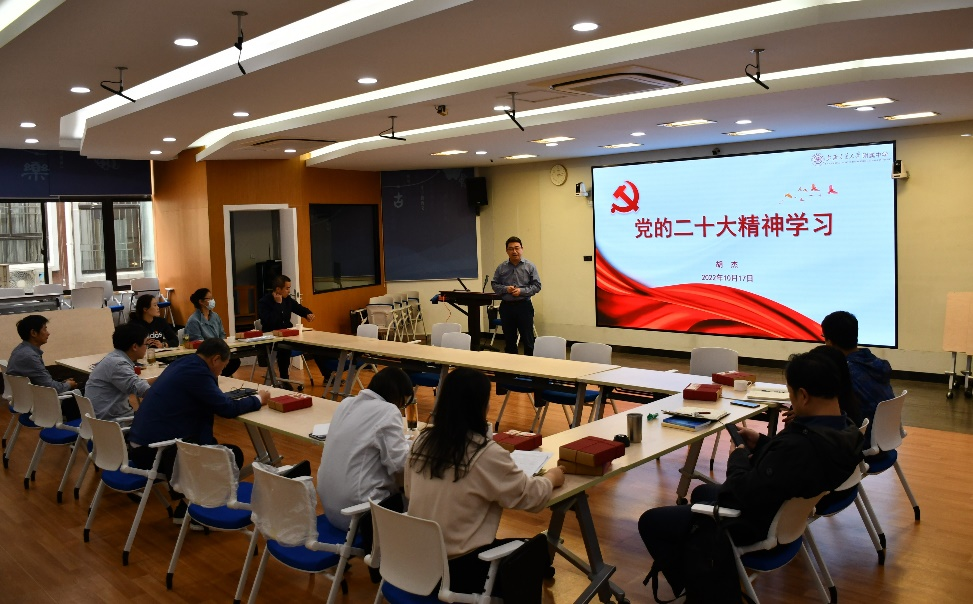 2022年10月17日下午,交大附中干部中心组举行了“党的二十大精神”专题学习会,本次专题学习的主题是学习党的二十大报告,学习由副书记、副校长胡杰主持。