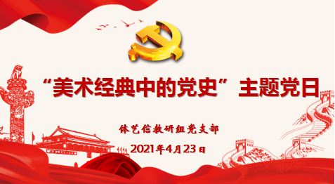 2021年4月23日,体艺信党支部在君洪楼410会议室开展了“美术经典中的党史”主题党日活动。本次活动议程主要围绕“微党课:美术经典中的党史”、“学习讲话:习近平总书记考察清华大学重要讲话”、“上海交大附中两优一先评选推荐”进行,体艺信党支部全体党员出席了活动,活动由曾腾老师主持。