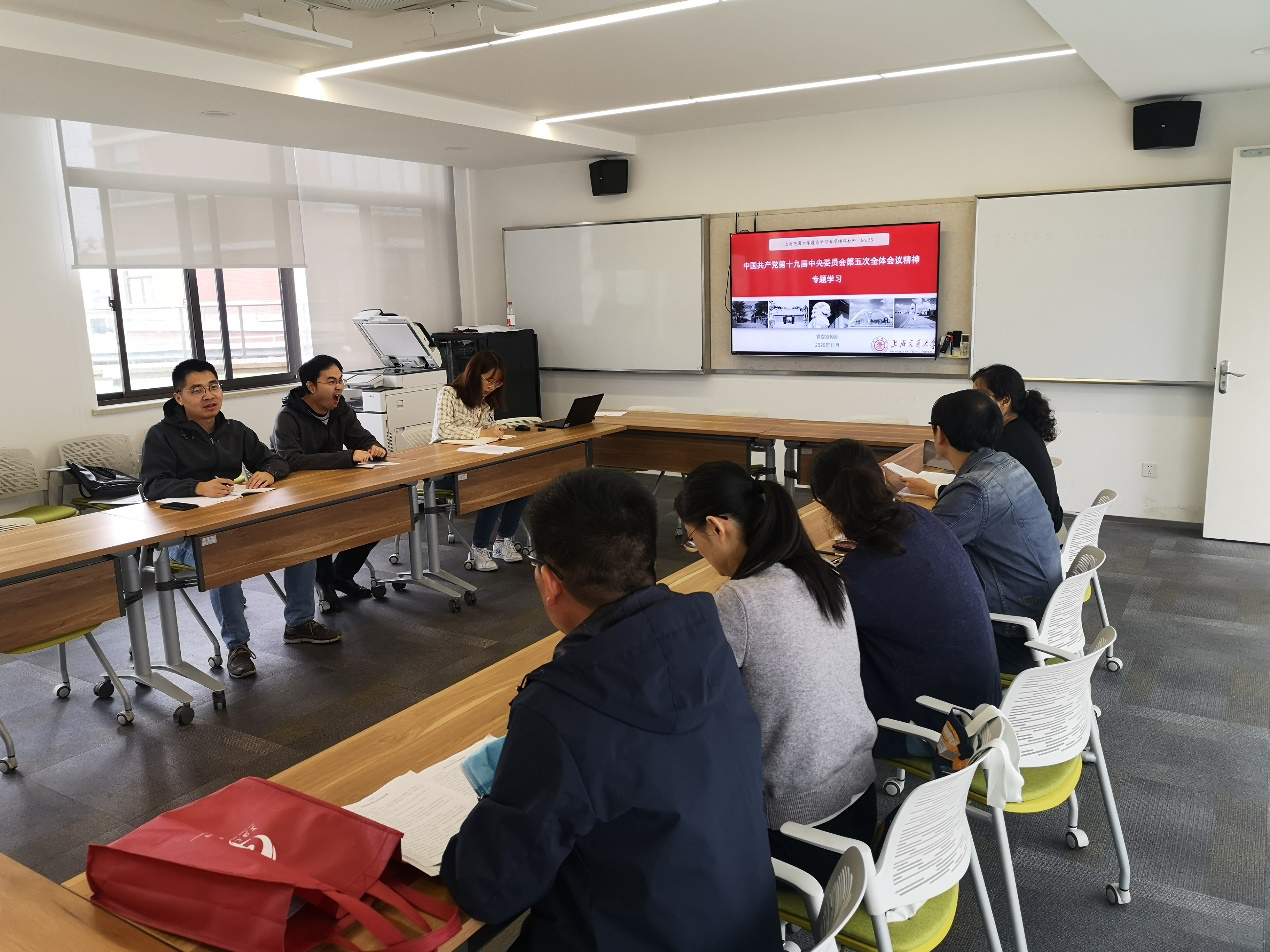 接着,支部全体成员还对党的十九届五中全会的解读进行了积极的研讨交流,各位老师结合自身教学教育实践活动,各自谈了心得体会。支部成员纷纷表示,学习贯彻党的十九届五中全会精神是当前和今后一个时期的一项重要政治任务。五中全会是在我国即将实现第一个百年奋斗目标、开启全面建设社会主义现代化国家新征程的关键时刻召开的盛会,举国关注,举世瞩目。在全面建成小康社会后,我国将开启全面建设社会主义现代化国家的新征程。