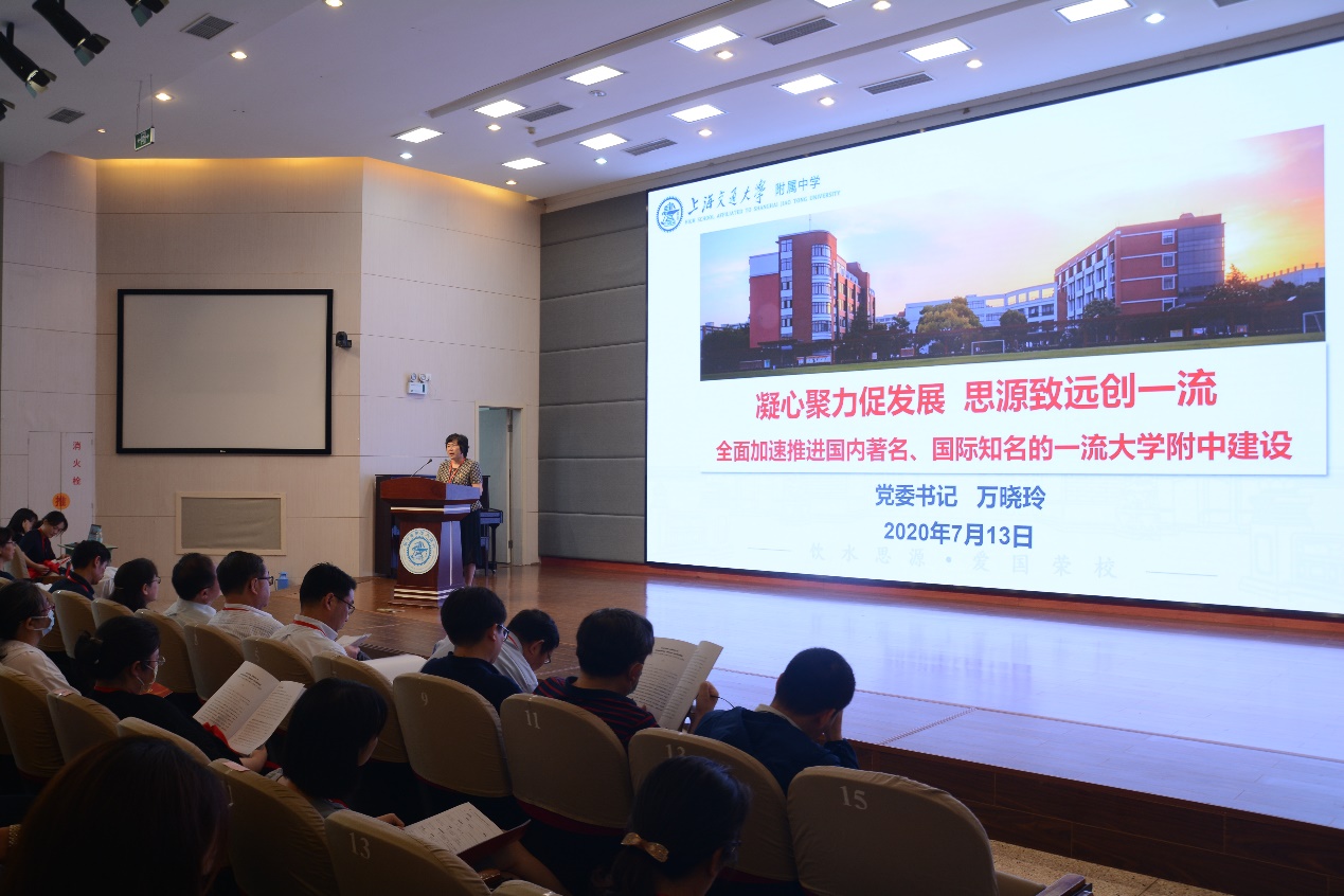 万晓玲全面分析了学校改革发展面临的形势,强调面对新时代、新征程和新挑战,学校将以新时代中国特色社会主义思想及习近平总书记关于教育的重要论述精神指导工作,深刻领会其科学内涵和精神实质,坚定不移地坚持社会主义办学方向;以“四个服务”为宗旨,牢记“立德树人”根本任务,努力为国家培养更多“德智体美劳”全面发展的社会主义建设者和接班人。学校党委要继续发挥政治保证和战斗堡垒作用,带领全体党员,发挥先锋模范作用,不懈努力,实现交大附中的长远发展目标而奋斗。