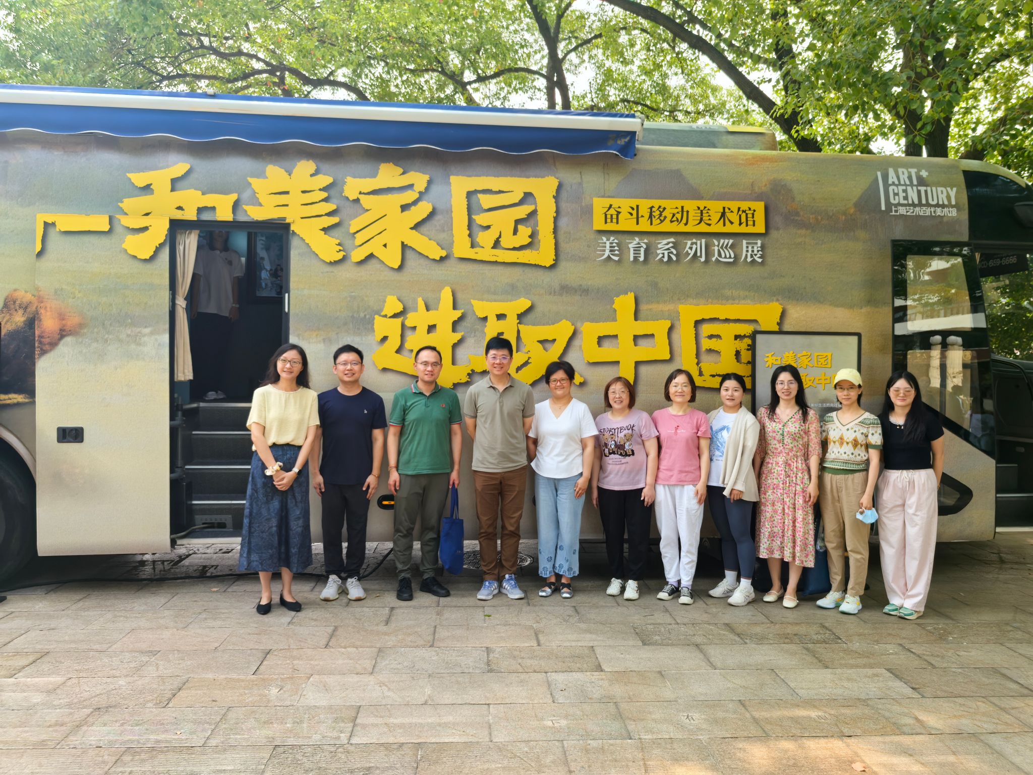 2025年10月13日,为深入学习贯彻党的二十大精神,推动主题教育走深走实,英语党支部以“奋斗移动美术馆‘家园’主题大巴巡展”为载体,创新开展主题党日活动。一辆满载艺术与文化使命的“移动美术馆”大巴驶入校园,通过沉浸式艺术展览与互动体验,引导师生感悟“家园”内涵,激发奋斗热情,凝聚新时代青年力量。
