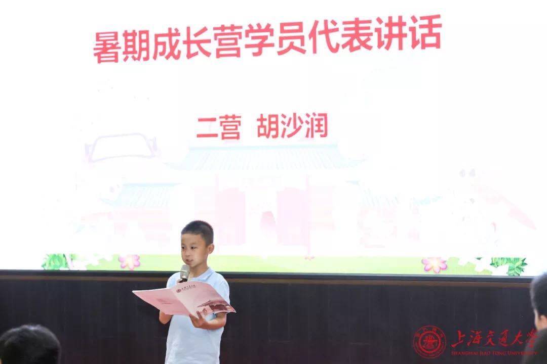 二营学员胡沙润代表暑期成长营学员发言,表达了对老师和小伙伴们的感谢。